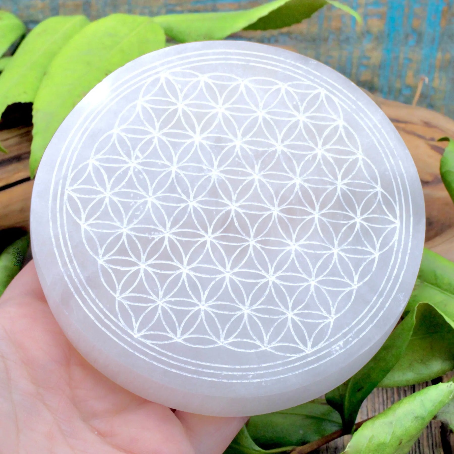 Embrace tranquility throughout your entire day with this exquisite Selenite Flower of Life Charging Plate. This captivating gem serves as a flawless conduit to harness the profound energy of Selenite, allowing you to immerse yourself in its remarkable essence. Additionally, its gentle caress upon your palm grants a delightful sensation, heightening the experience of harmony and tranquility.