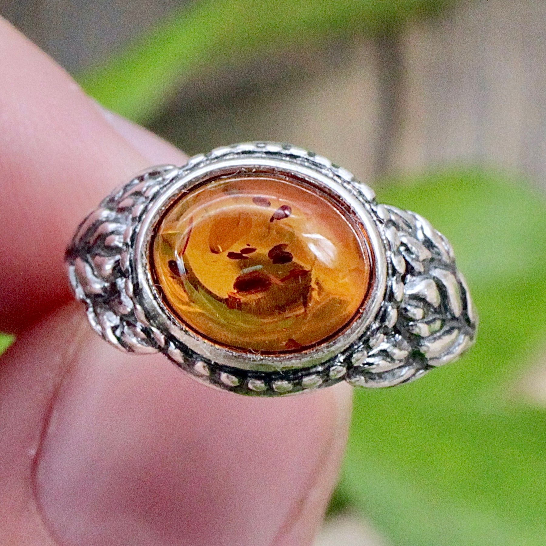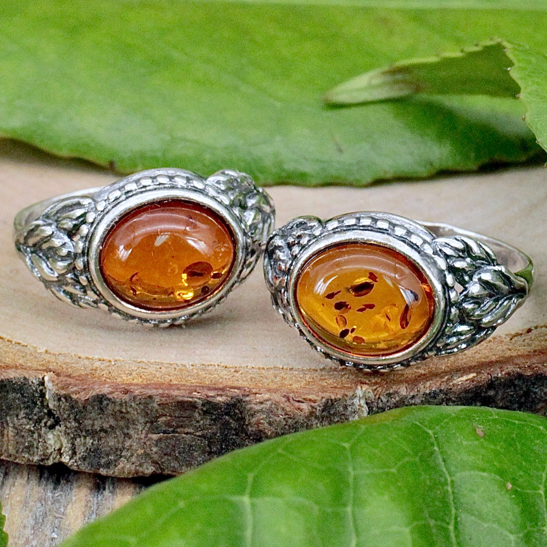 Amber Ring with Leaf Detail