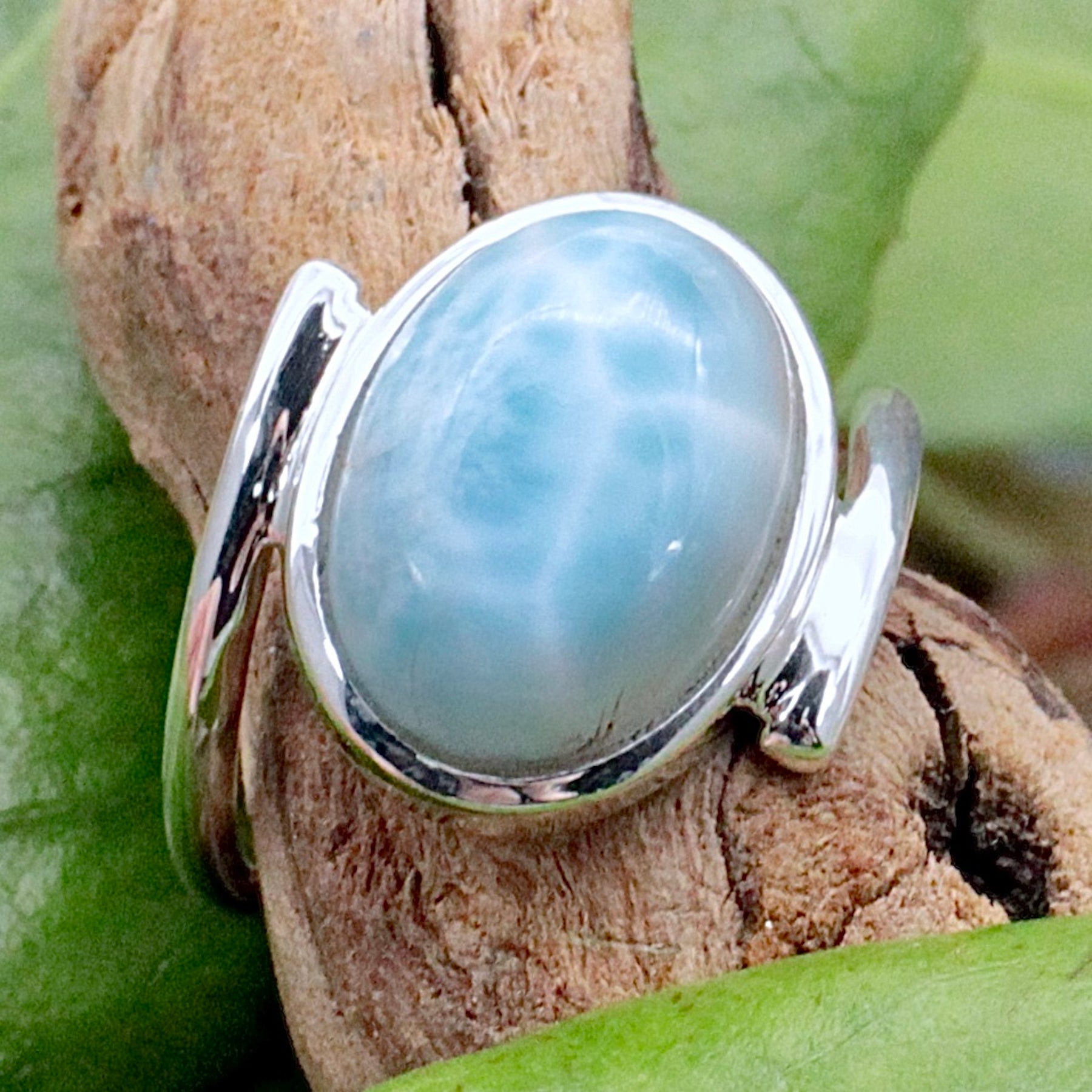 Embrace life's pleasures with this Larimar Oval Ring, a symbol of joy and tranquility. Larimar invites us to savor life's wonders, encouraging relaxation and appreciation for the beauty around us. Let its serene energy uplift your spirit and illuminate the path ahead.