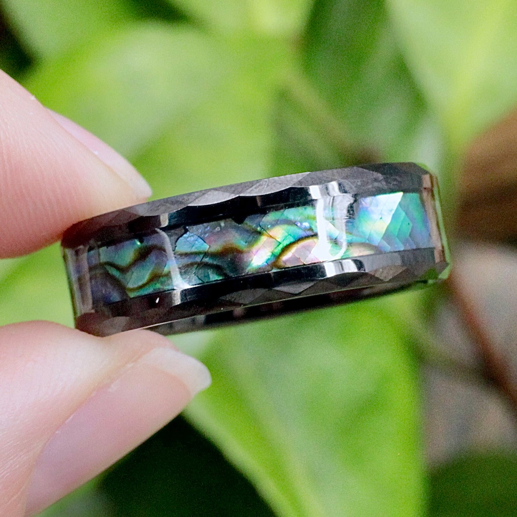 Elevate your style with this Men's Tungsten Ring with Abalone Inlay. Uniquely crafted for lasting elegance, its iridescent charm adds a touch of sophistication to any ensemble. Experience timeless luxury with every wear.