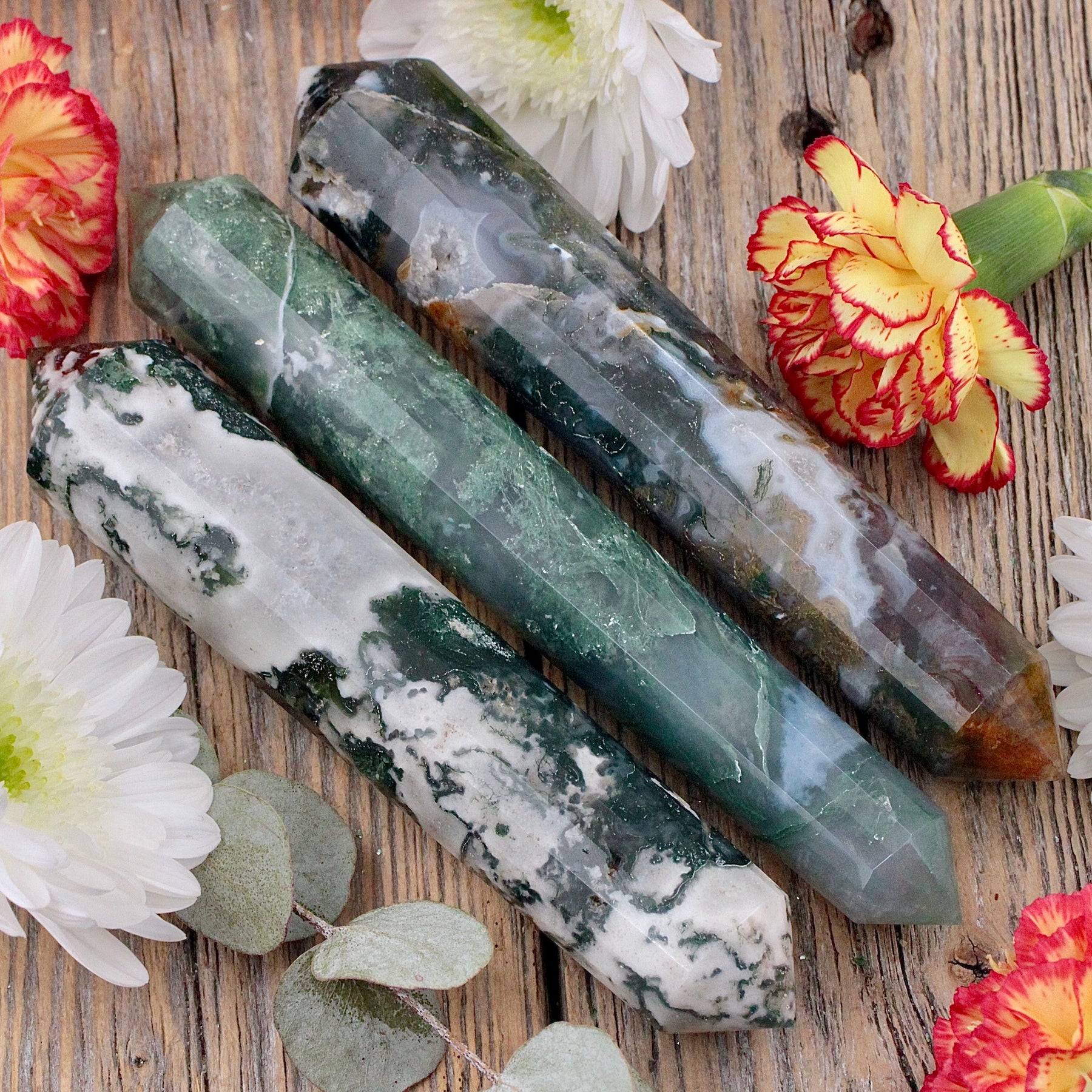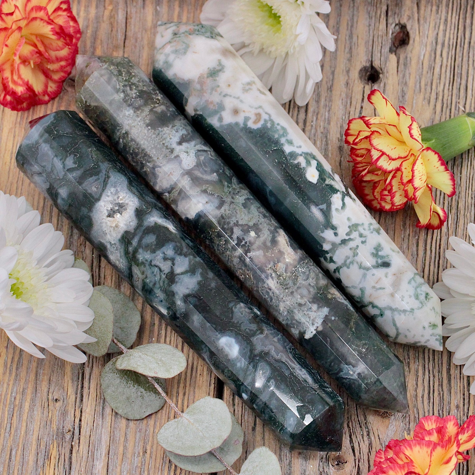 Moss Agate offers many gifts. It is s a stabilizing stone that helps balance emotions, relieving stress and fears. Known as a birthing crystal, it supports midwives in their work, helping to ease pain and ensure a healthy delivery. Deeply healing, it supports both emotional and physical health, facilitates healing and helps speed recovery. Moss Agate attracts good fortune and abundance and refreshes the soul. It inspires hope, trust and belief in your dreams and ideals.