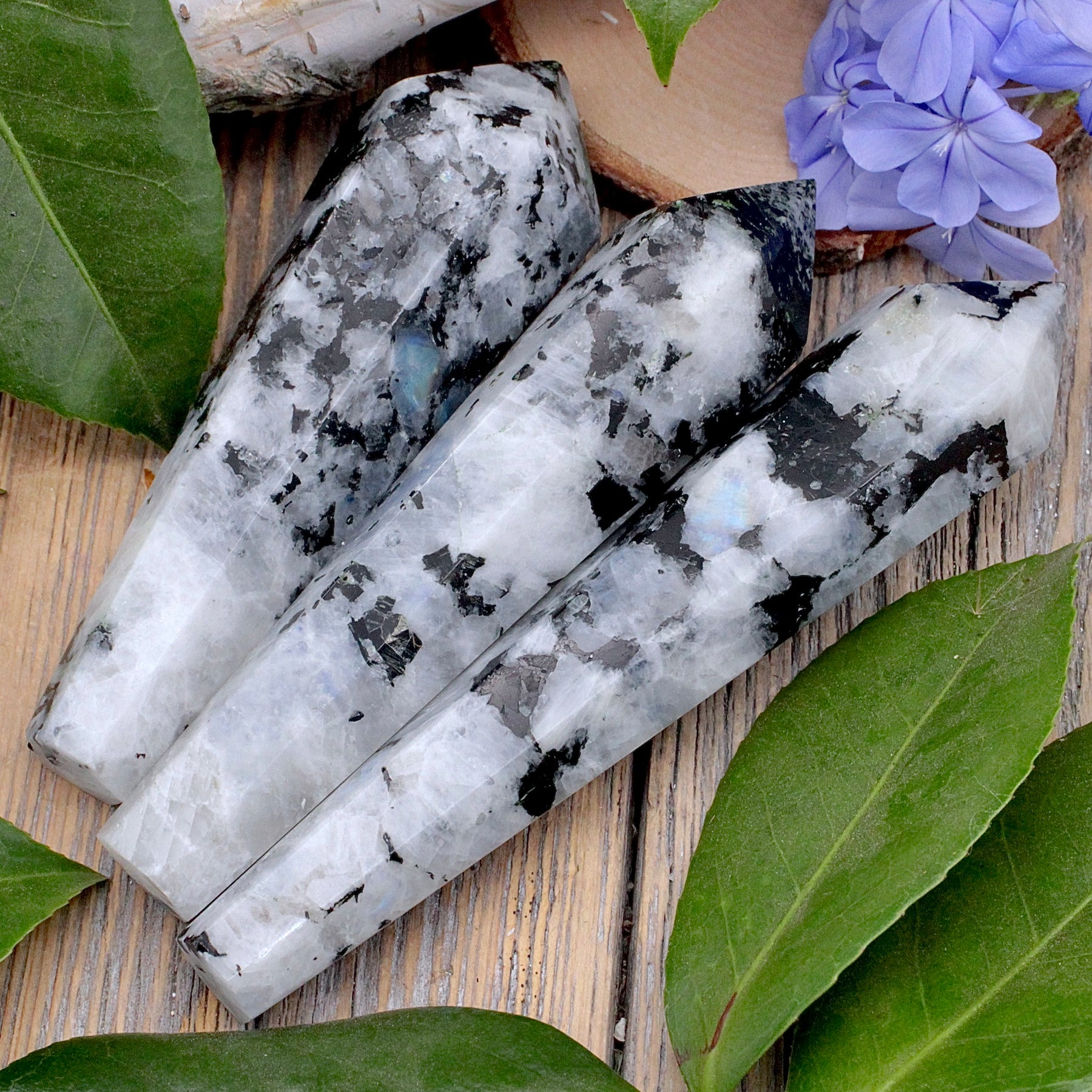 Let go of old patterns with the help of this Rainbow Moonstone Wand. The beautiful flash that can be found in the stone reminds us to look carefully within ourselves to calmly move into our new futures.