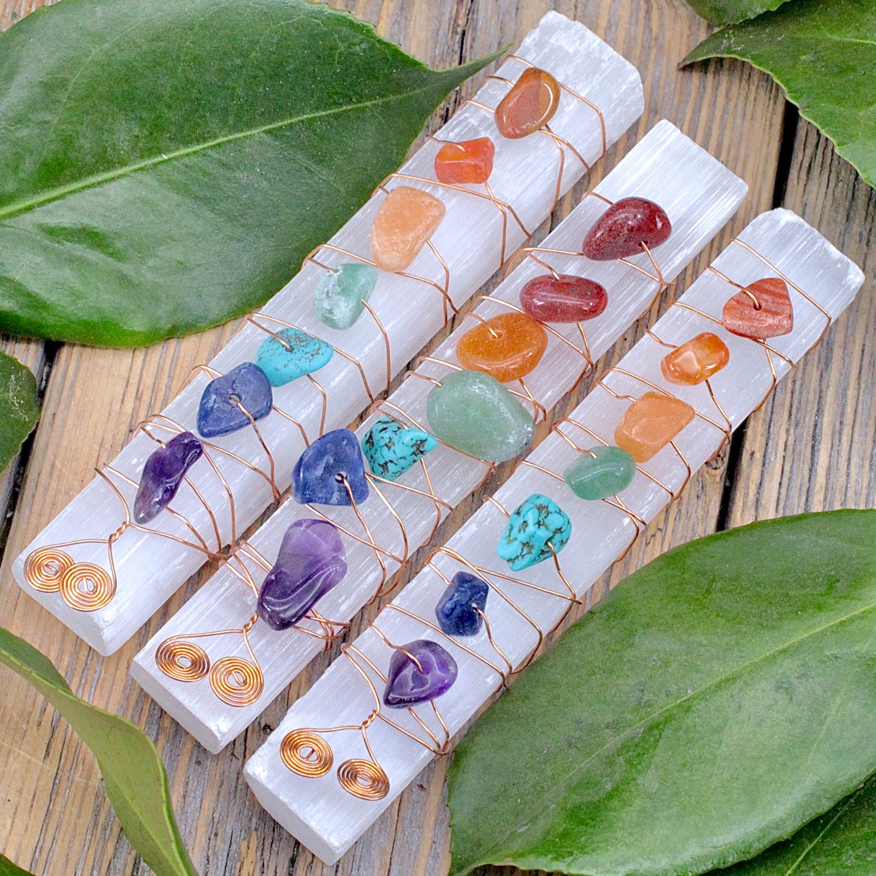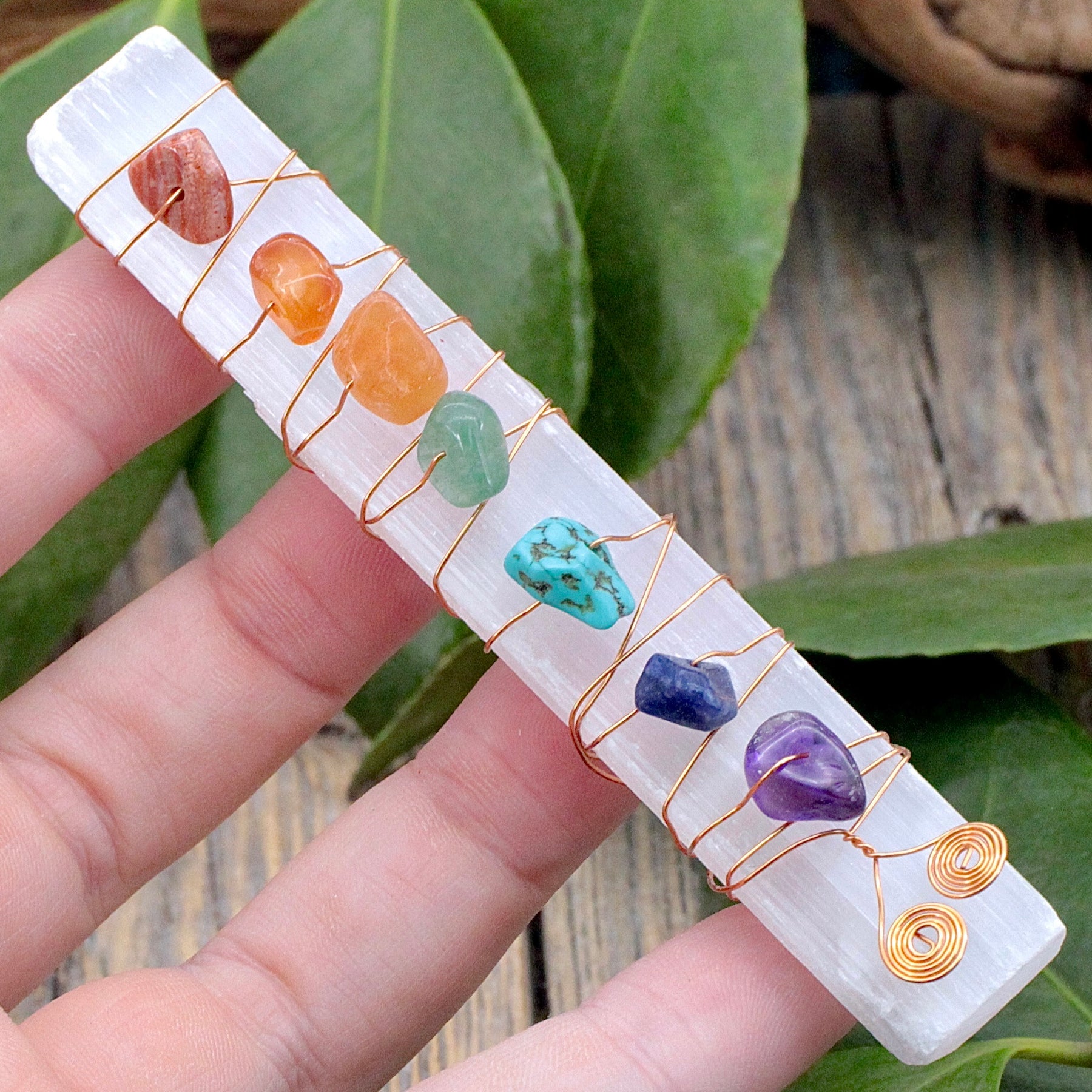 Clear negative energy in your life and home by having this Selenite Wand with Chakra Stones in your life. This wand is the perfect tool for removing negative energy from any space or object while finding balance to your spirit. It can also be used to focus on other crystals and revitalize them to their full power once again.