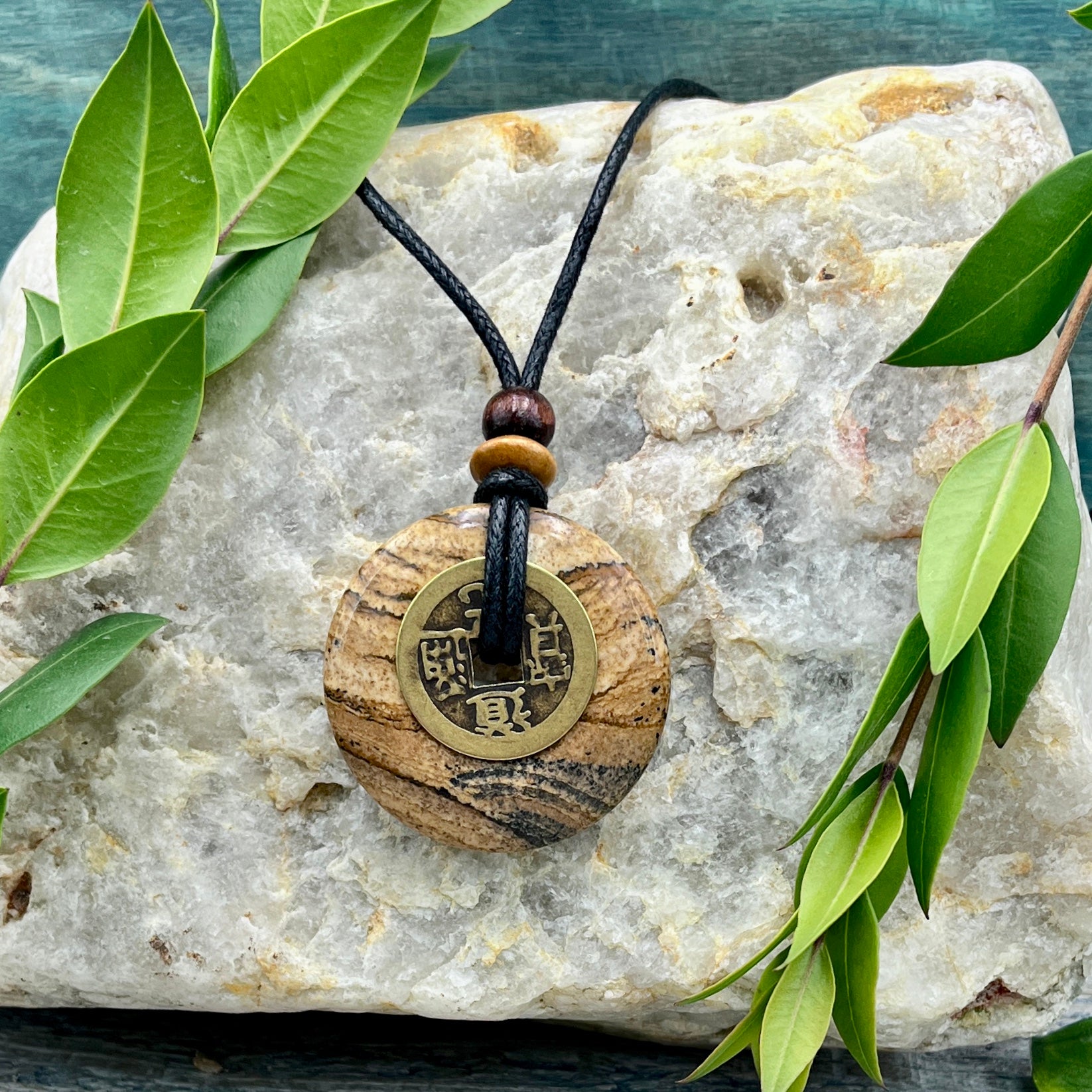 Instill harmony and balance into your journey with this Ancient Wisdom Necklace. As part of our Sacred Earth Amulet collection, this piece combines the energy of the stone with the symbolism of the Chinese "I Ching" coin which brings in wealth, good luck, and protection.