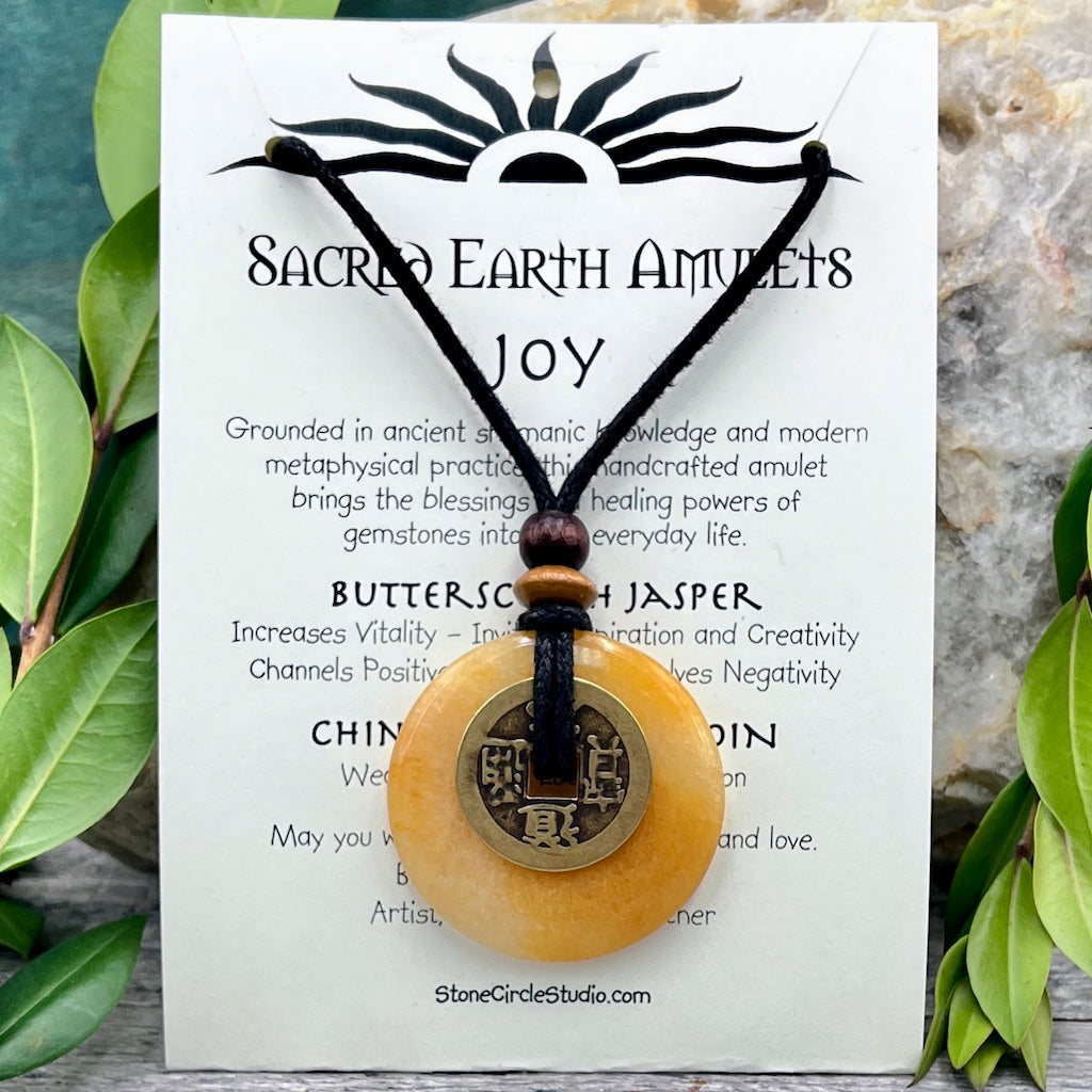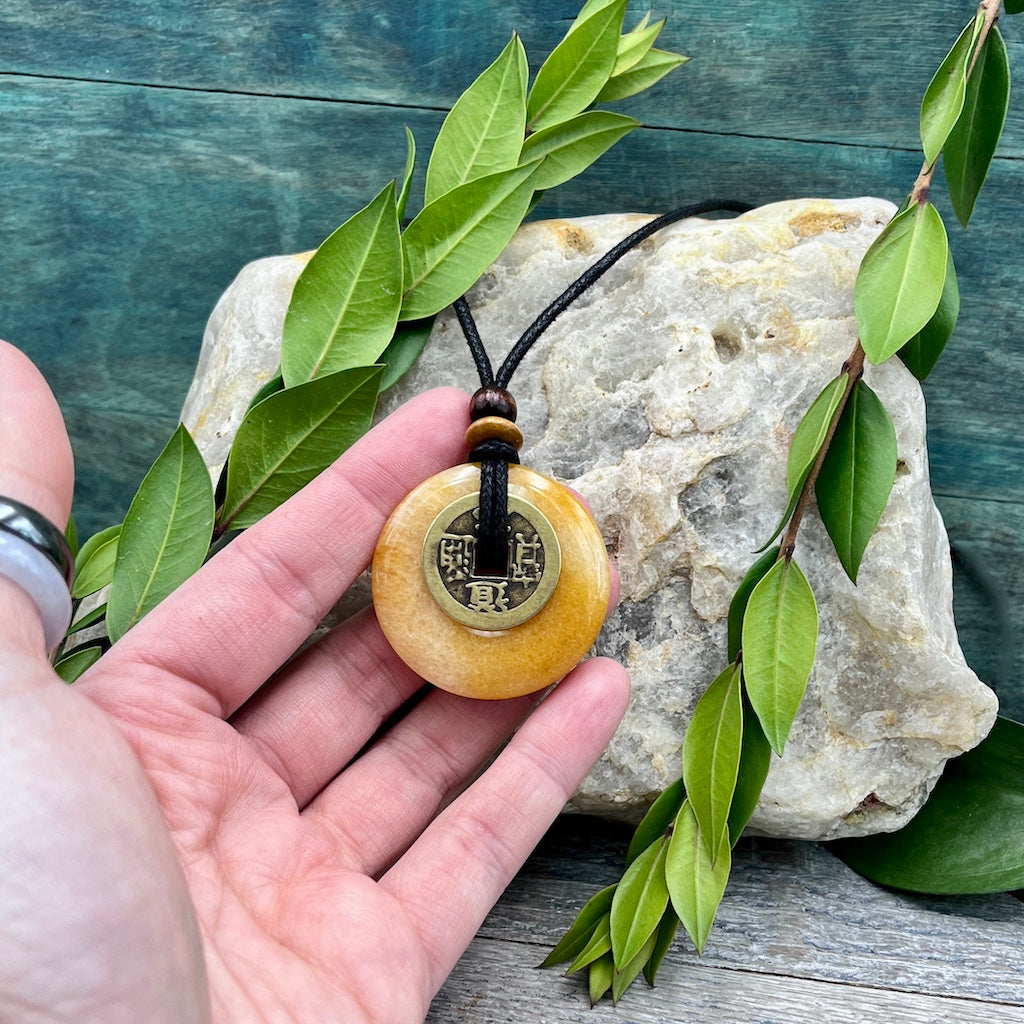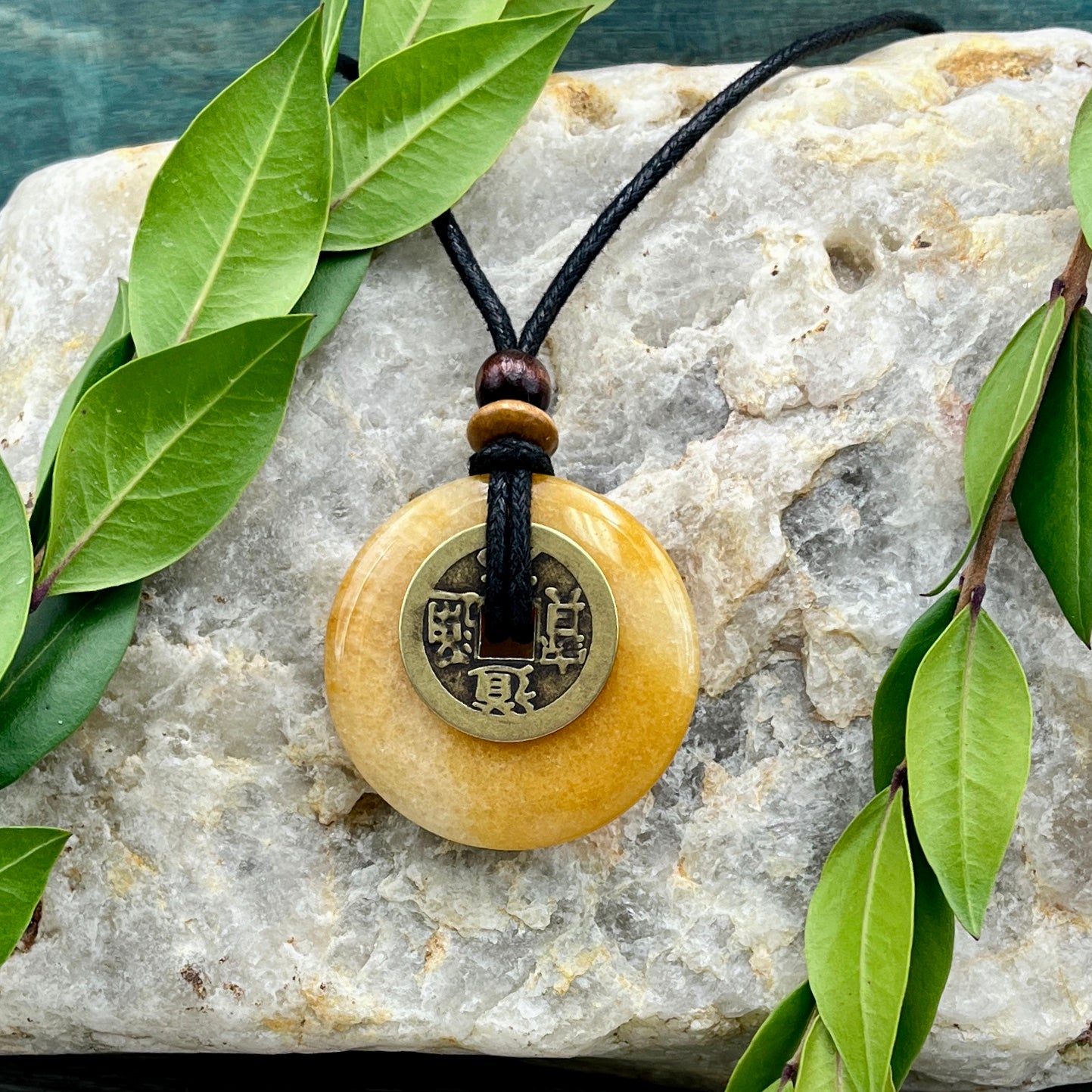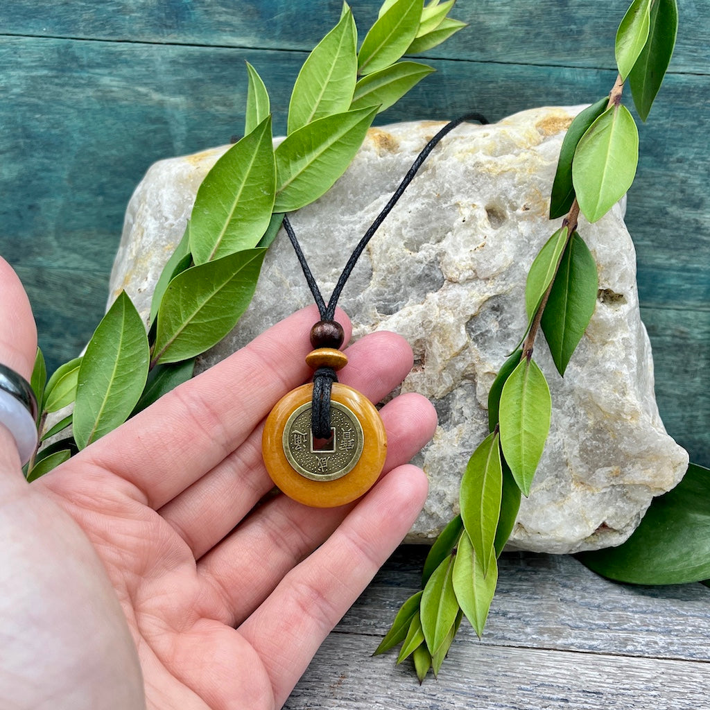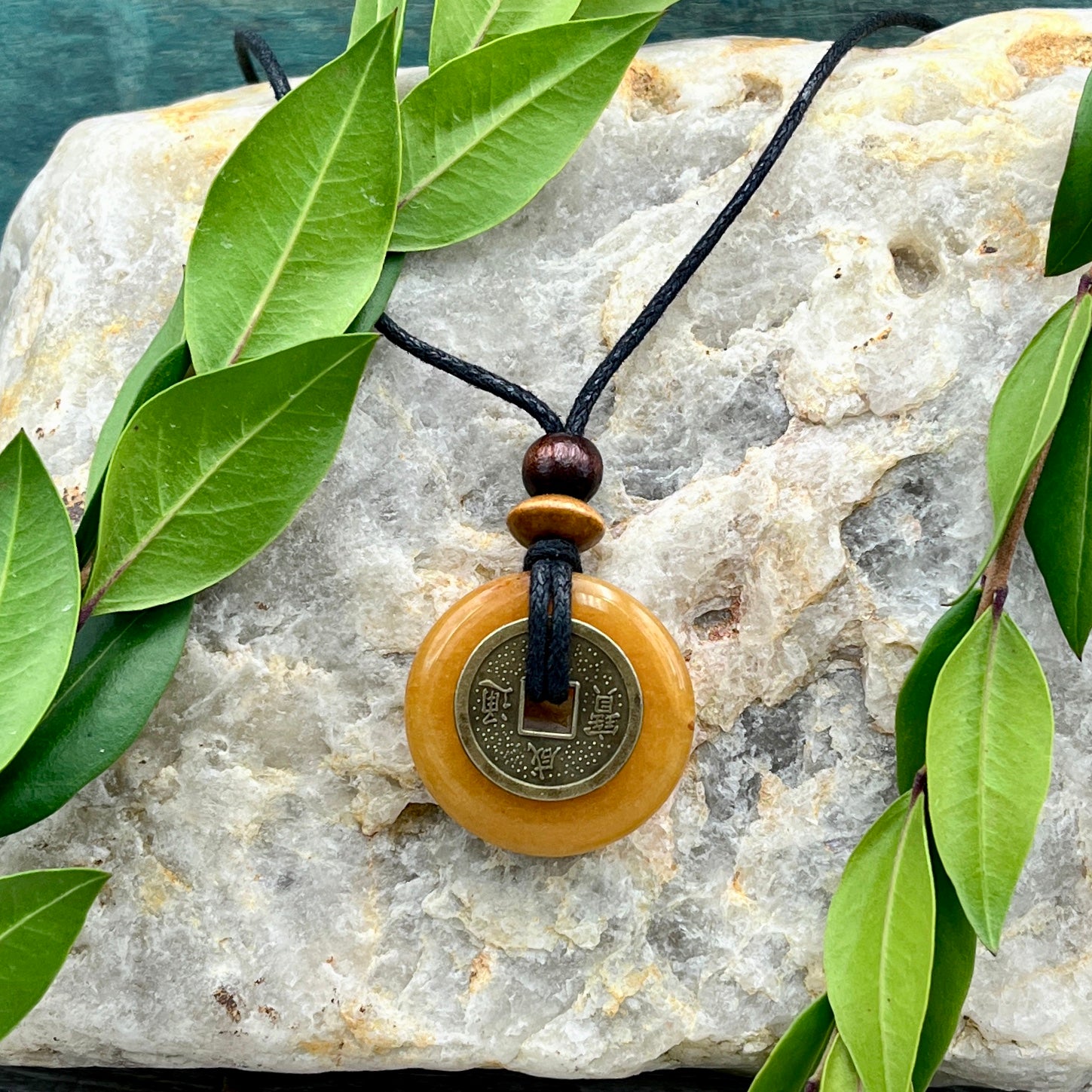 Dissolve negativity with this Joy Butterscotch Jasper Necklace. As part of our Sacred Earth Amulet collection, this piece combines the energy of the stone with the symbolism of the Chinese "I Ching" coin which brings in wealth, good luck, and protection.