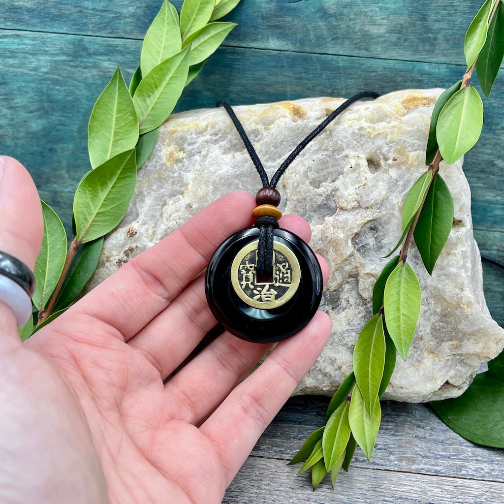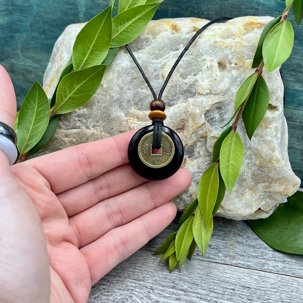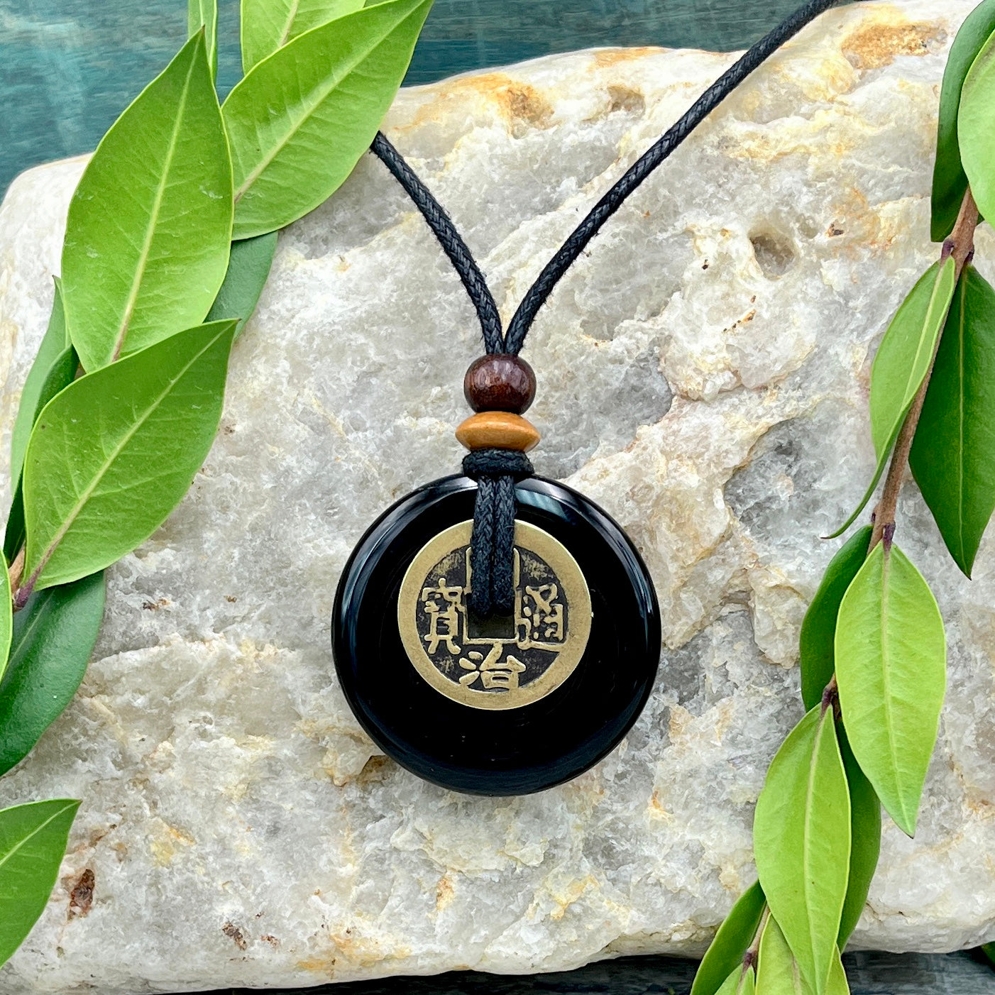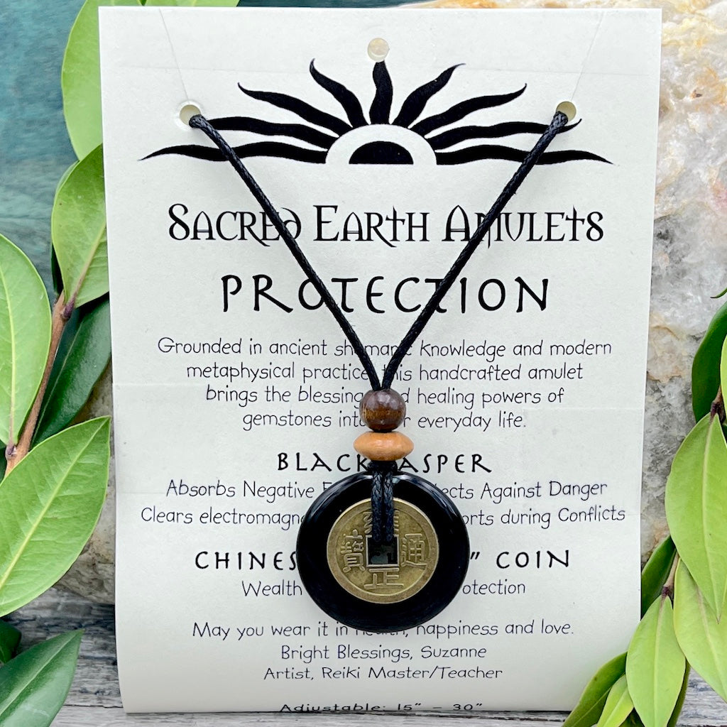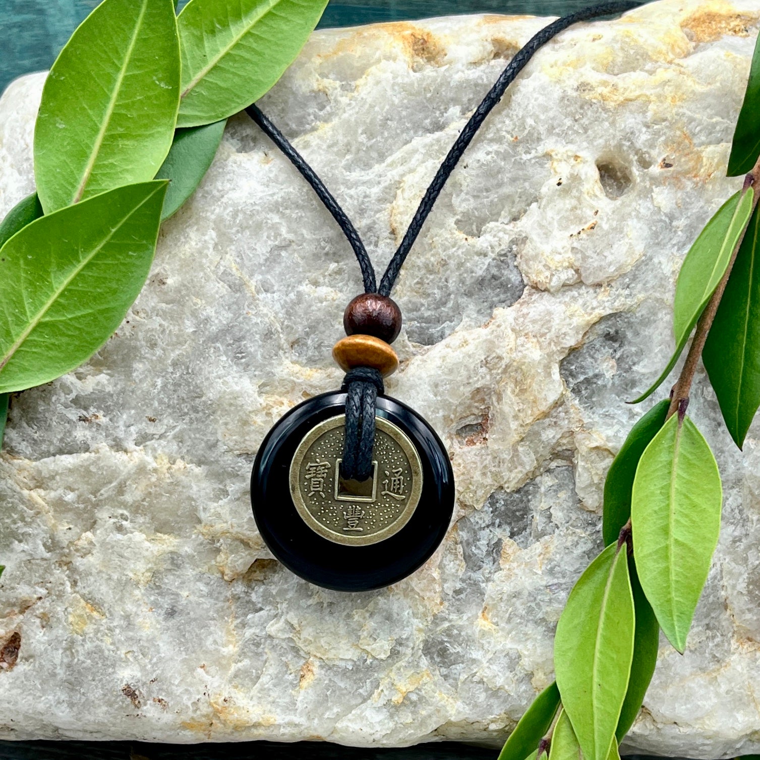 Ward off negativity with this Protection Black Jasper Necklace. As part of our Sacred Earth Amulet collection, this piece combines the energy of the stone with the symbolism of the Chinese "I Ching" coin which brings in wealth, good luck, and protection.