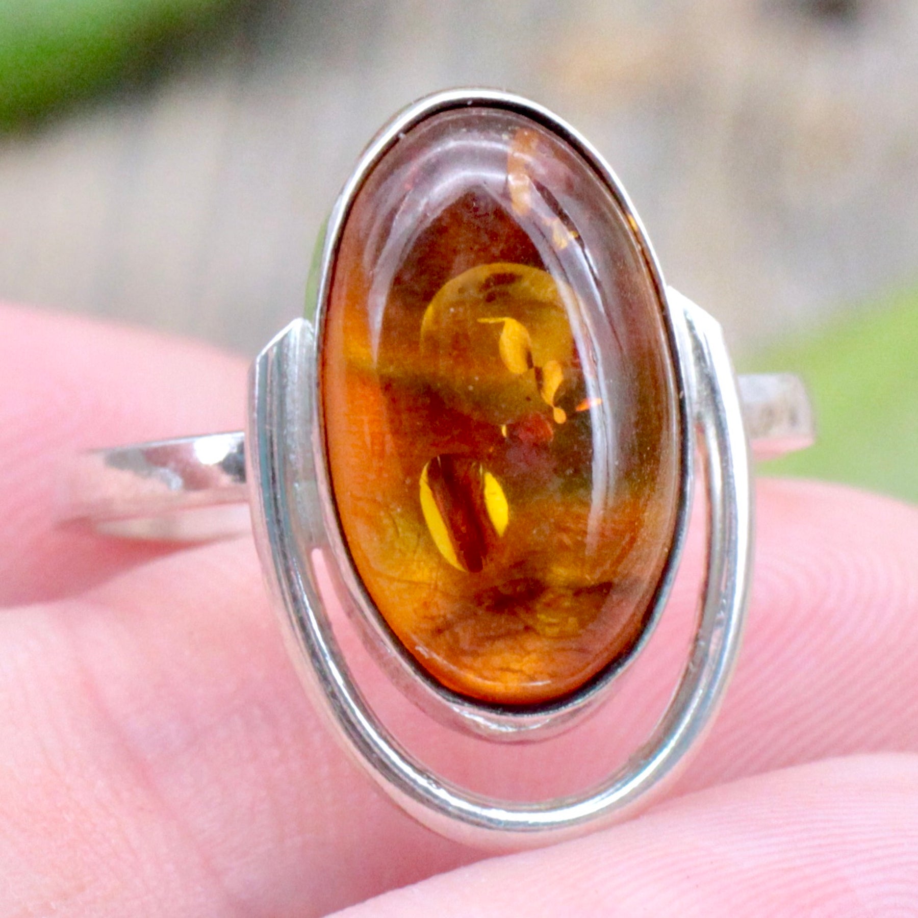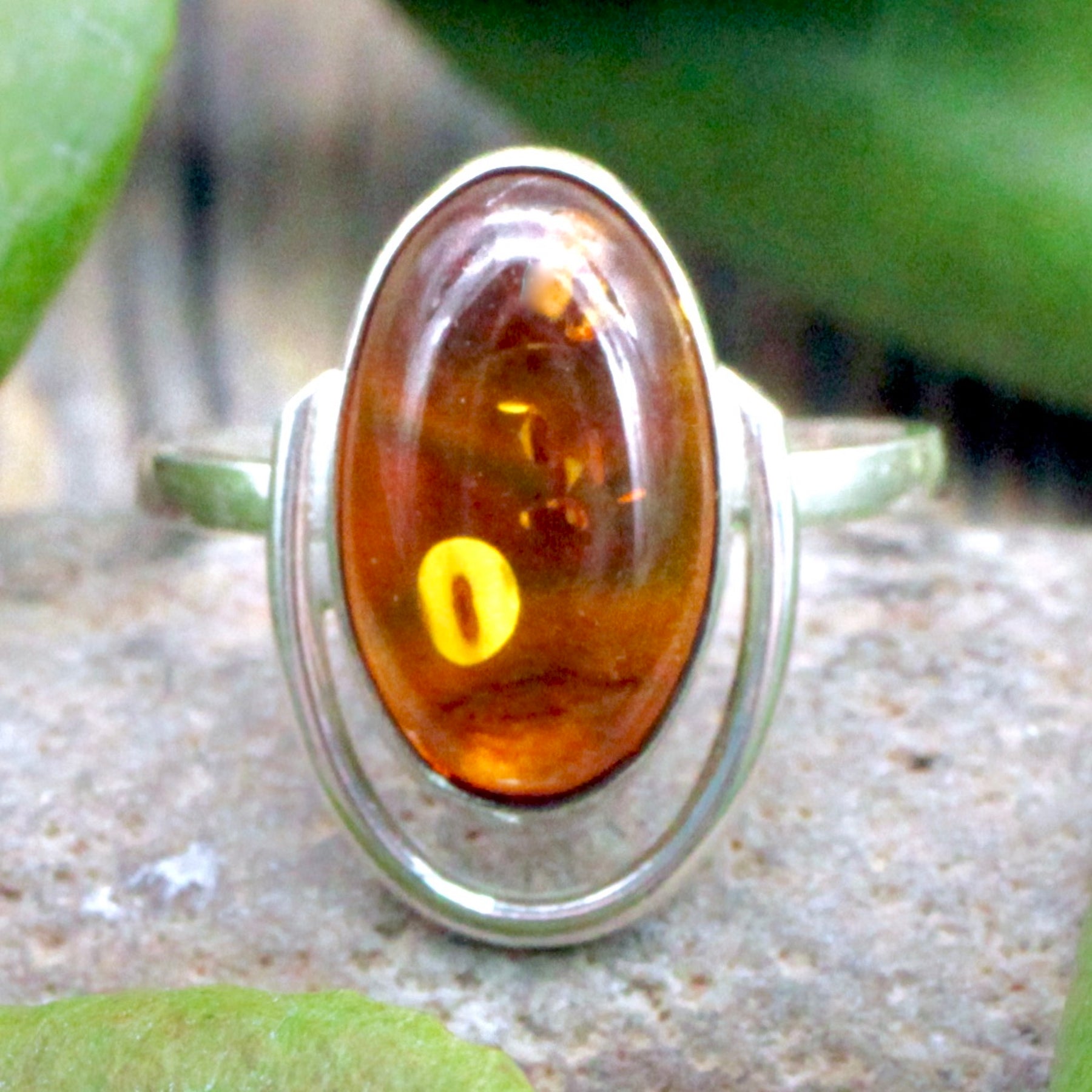 Amber Oval Ring - Sterling Silver