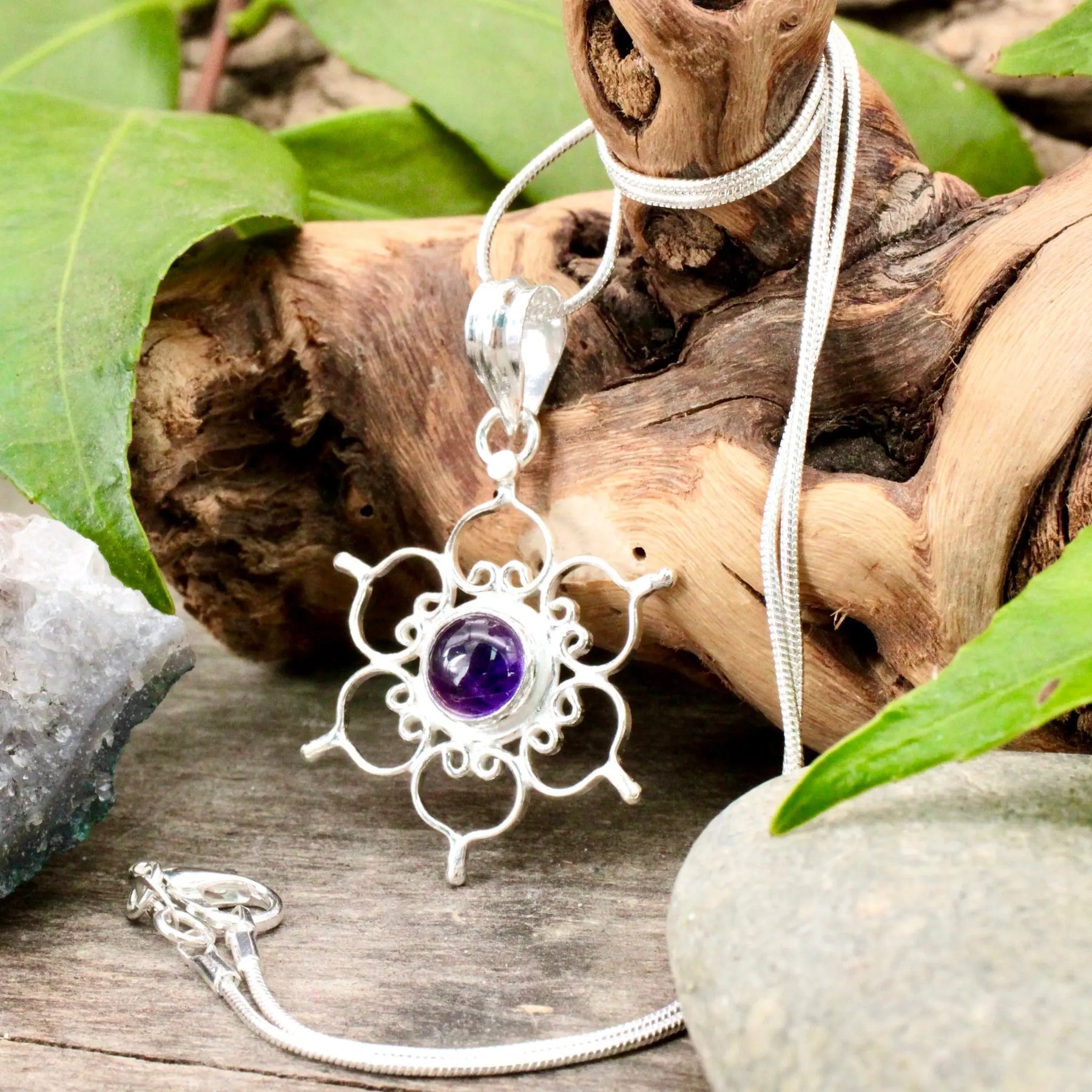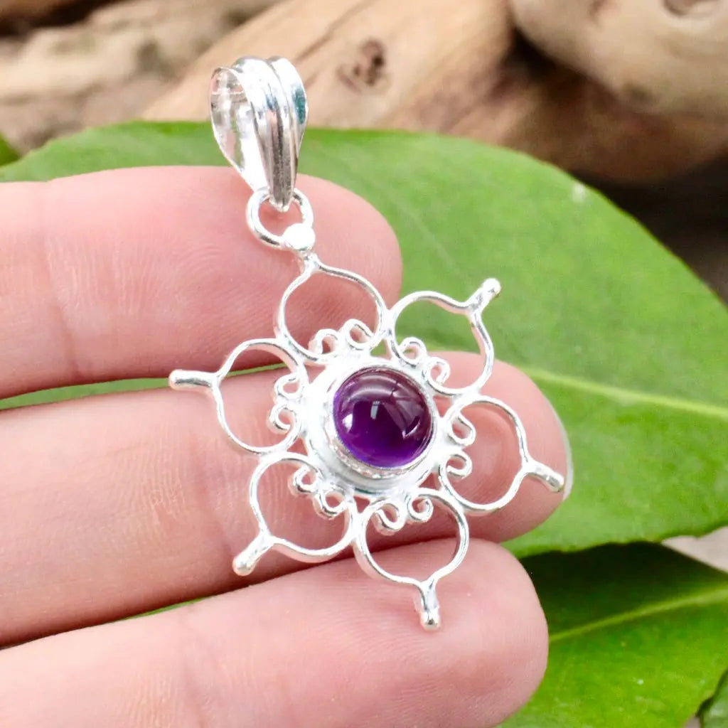 Amethyst In Silver Lotus Pendant