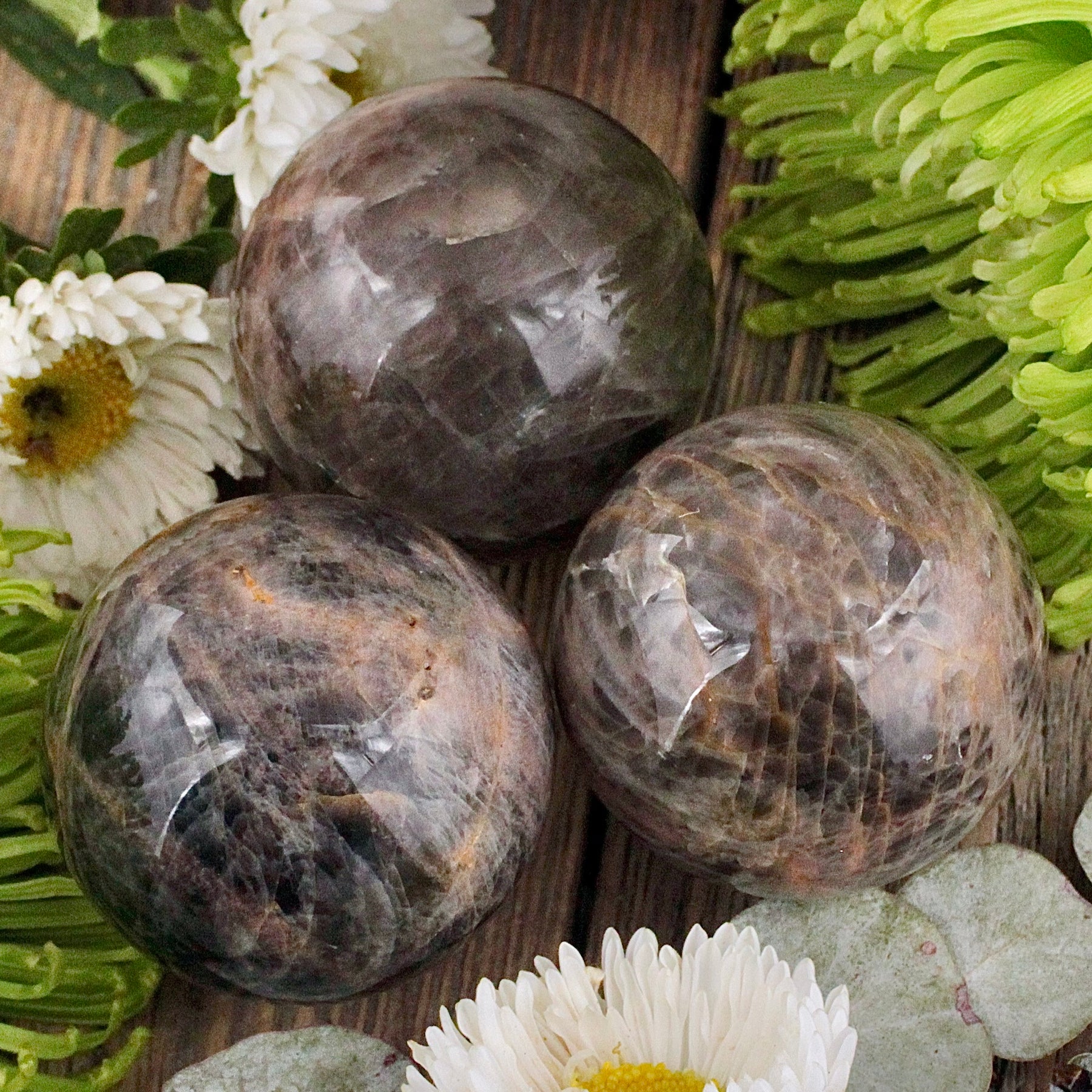 Black Moonstone carries the energy inherent in all Moonstone and connects us with the energy and wisdom of the divine feminine. Its strong connection to the moon reminds us we are part of an ever changing cycle, reflected in the phases of our lives. Black Moonstone has a special resonance with the new moon, new beginnings, new ideas, new hopes. This is an excellent stone for setting intentions. It promotes intuition and can be used to enhance psychic abilities. Its dark color adds a protective element to its energy.