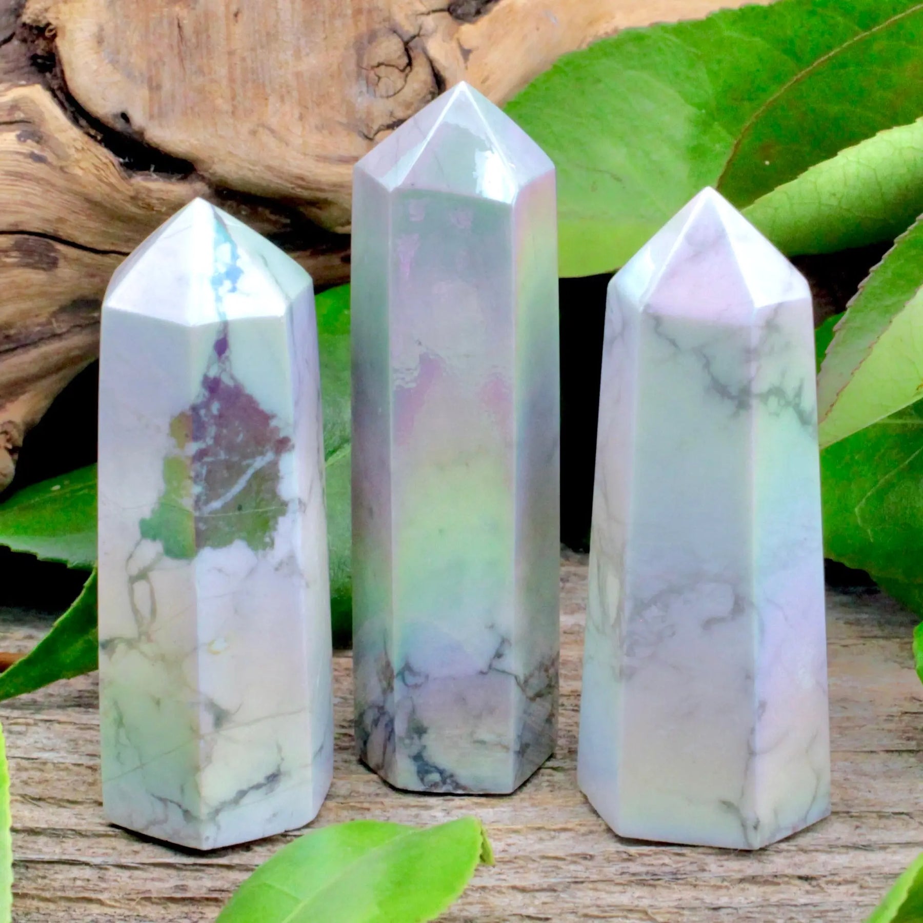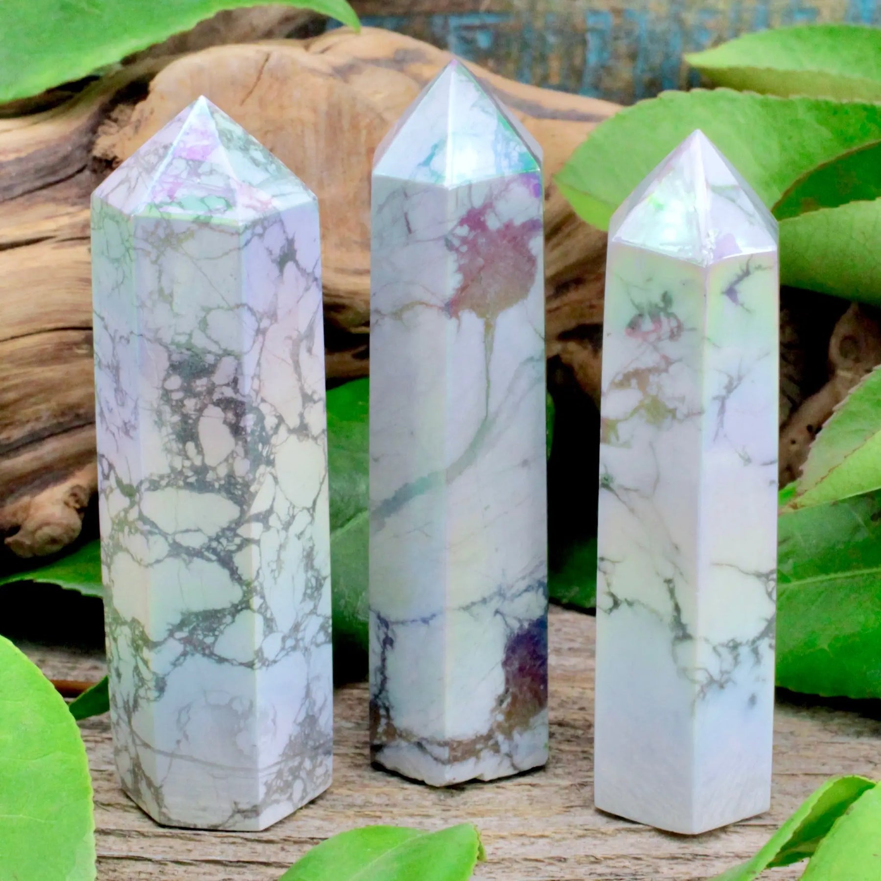 Allow our Howlite Aura Tower to aid you in meditation and sleep. Howlite links you to the spiritual dimensions and helps you receive wisdom and insight, often through your dreams.