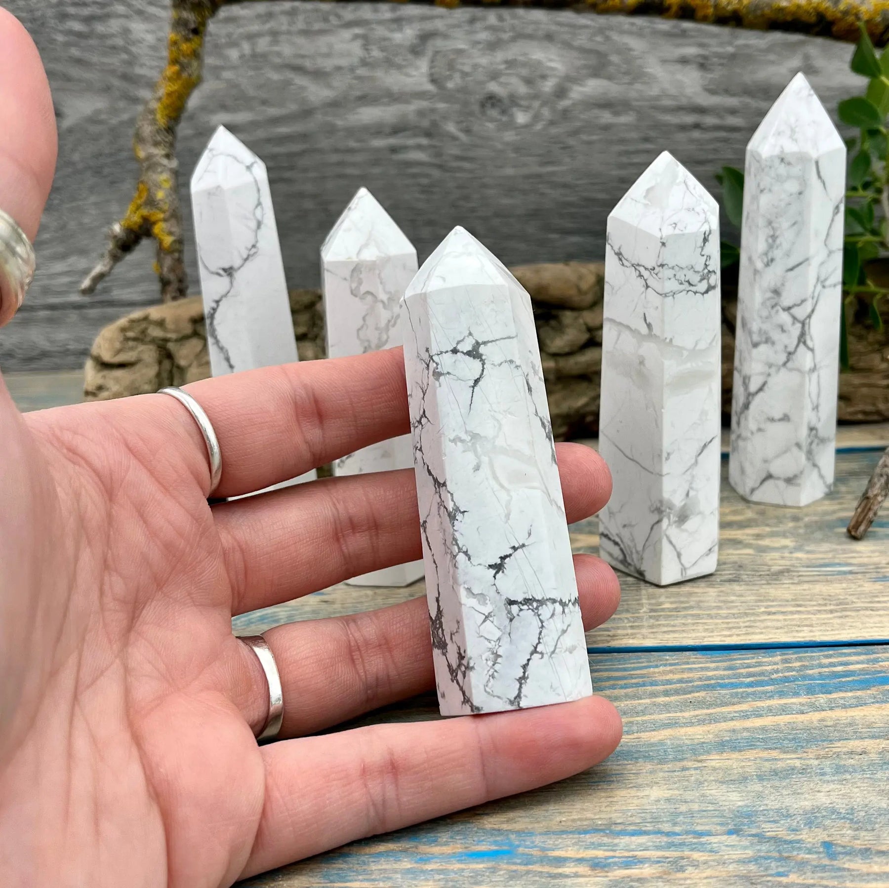 Invite crisp, clean, and calm energy into your space with this Howlite Tower. They’re a great helper for when you’re meditating, and these sizes are both great for keeping at your desk or on your alter.