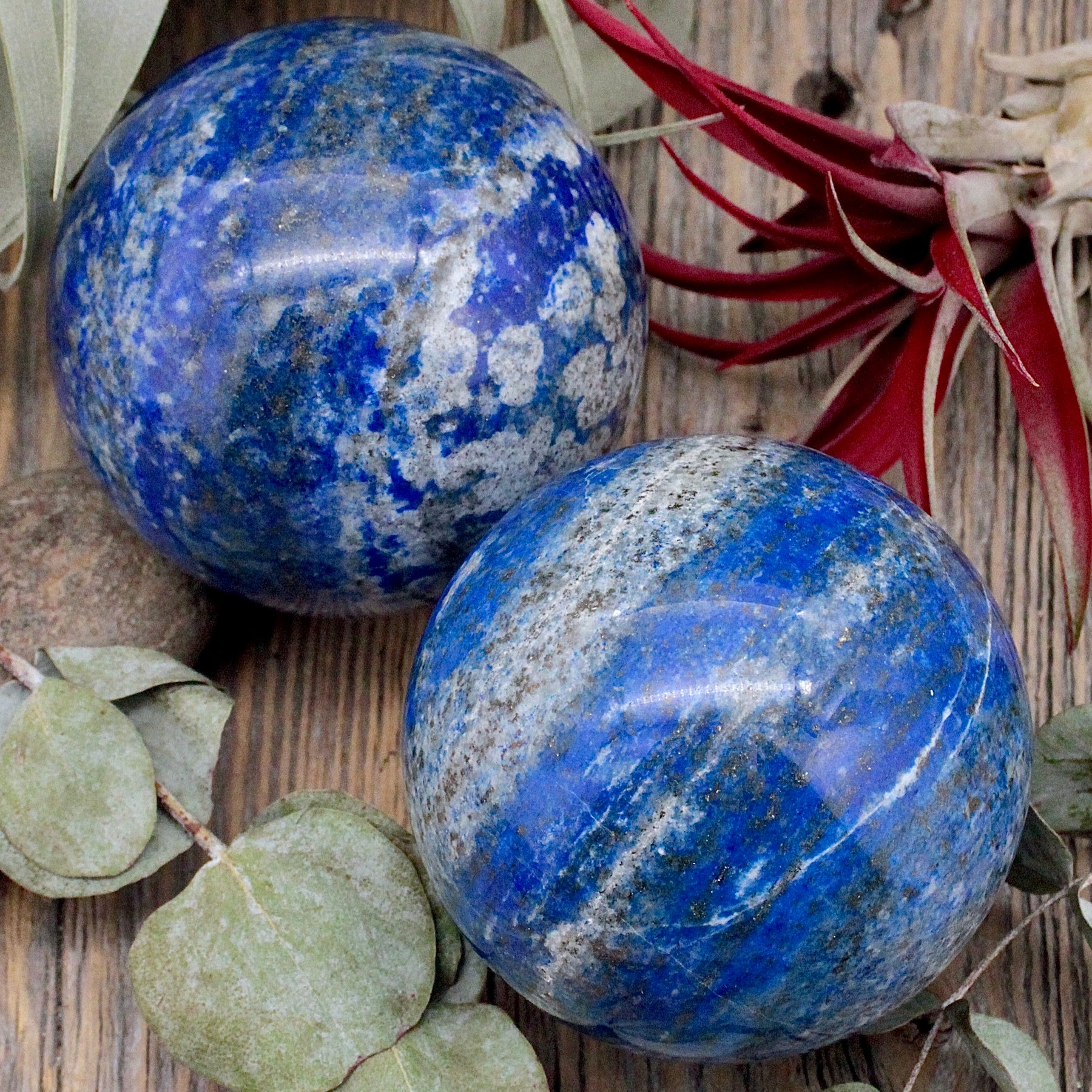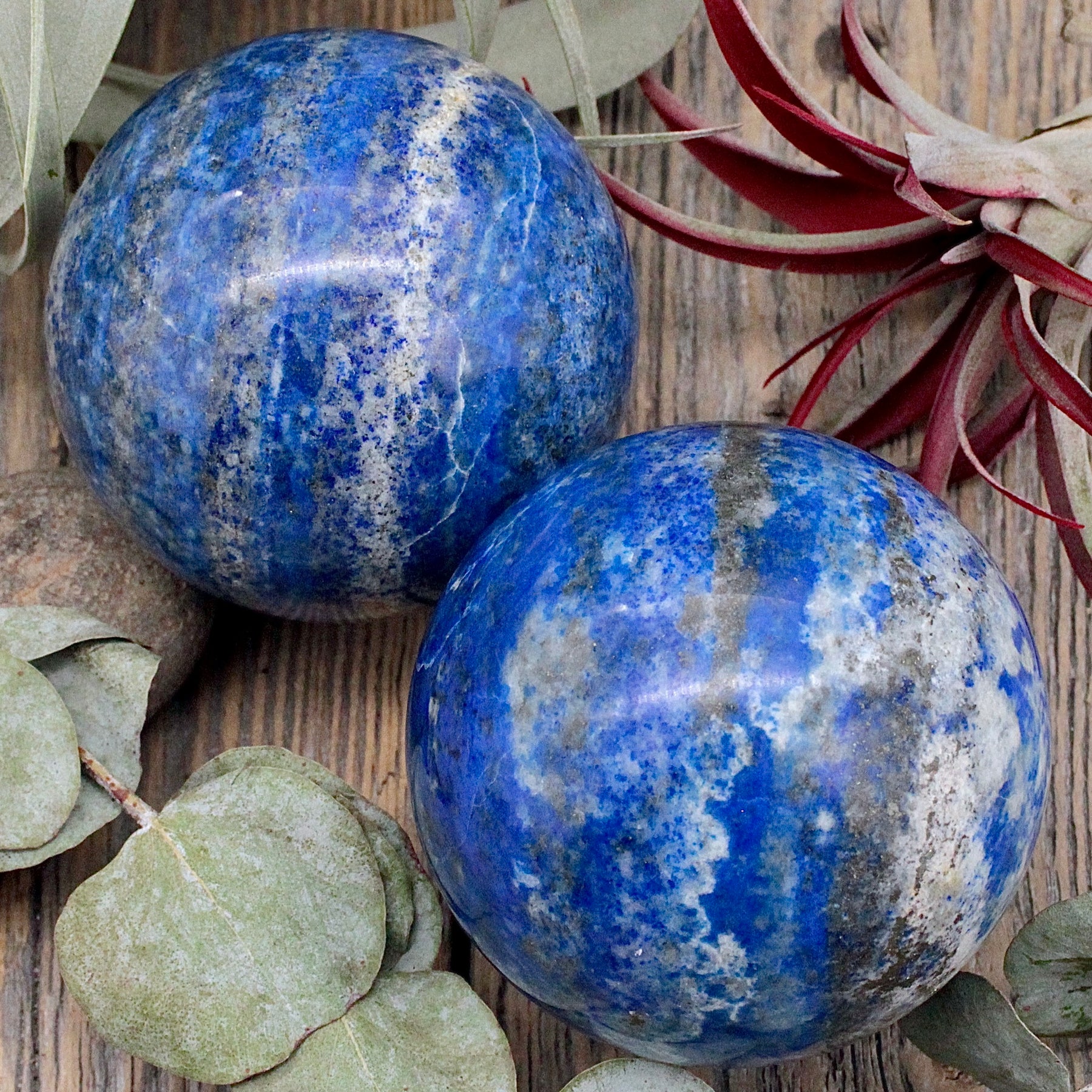 Gain insight and awareness with this Lapis Lazuli Sphere. The rich blue hues of this stone help to open and activate your throat and third eye Chakras allowing you to speak with wisdom and intention.