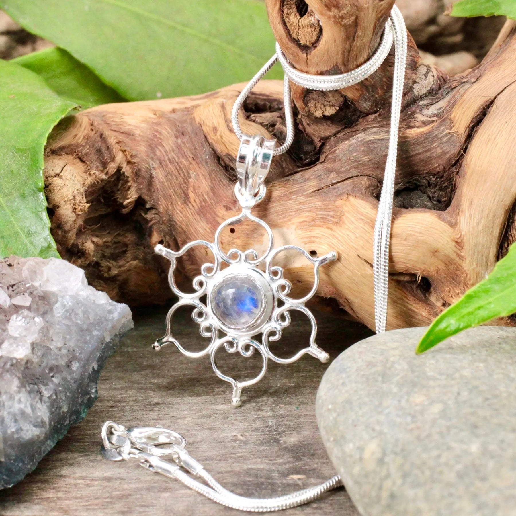 We adore the lotus symbol for its connection to starting fresh. The lotus flower is able to bloom beautiful despite it growing in swamps and muddier areas. The addition of the Moonstone crystal, which aids in starting new beginnings and finding peace in doing so, makes this pendant a sweet representation of discovering serendipity and harmony in starting fresh in life.