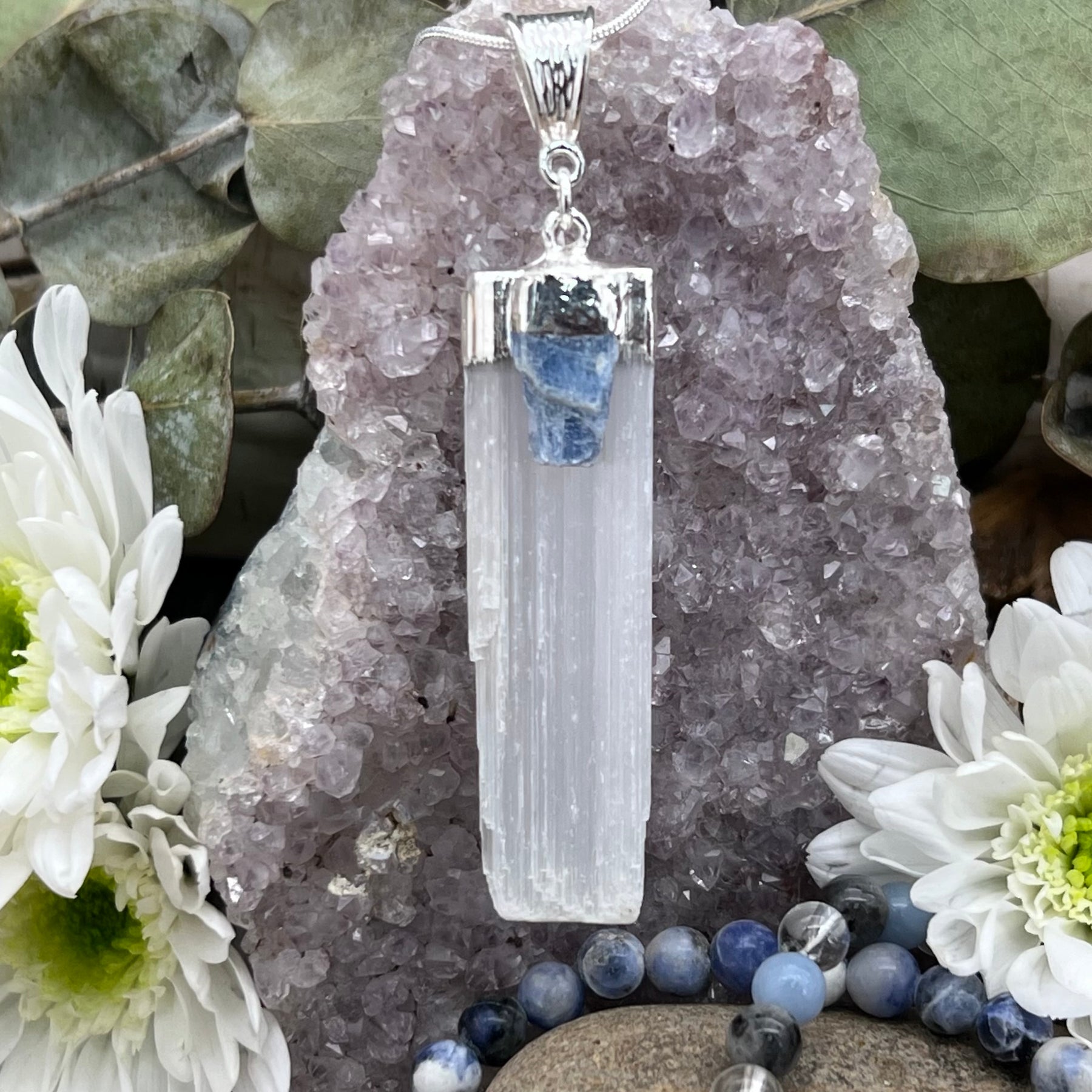 • Selenite Slab Necklace with Kyanite Accent