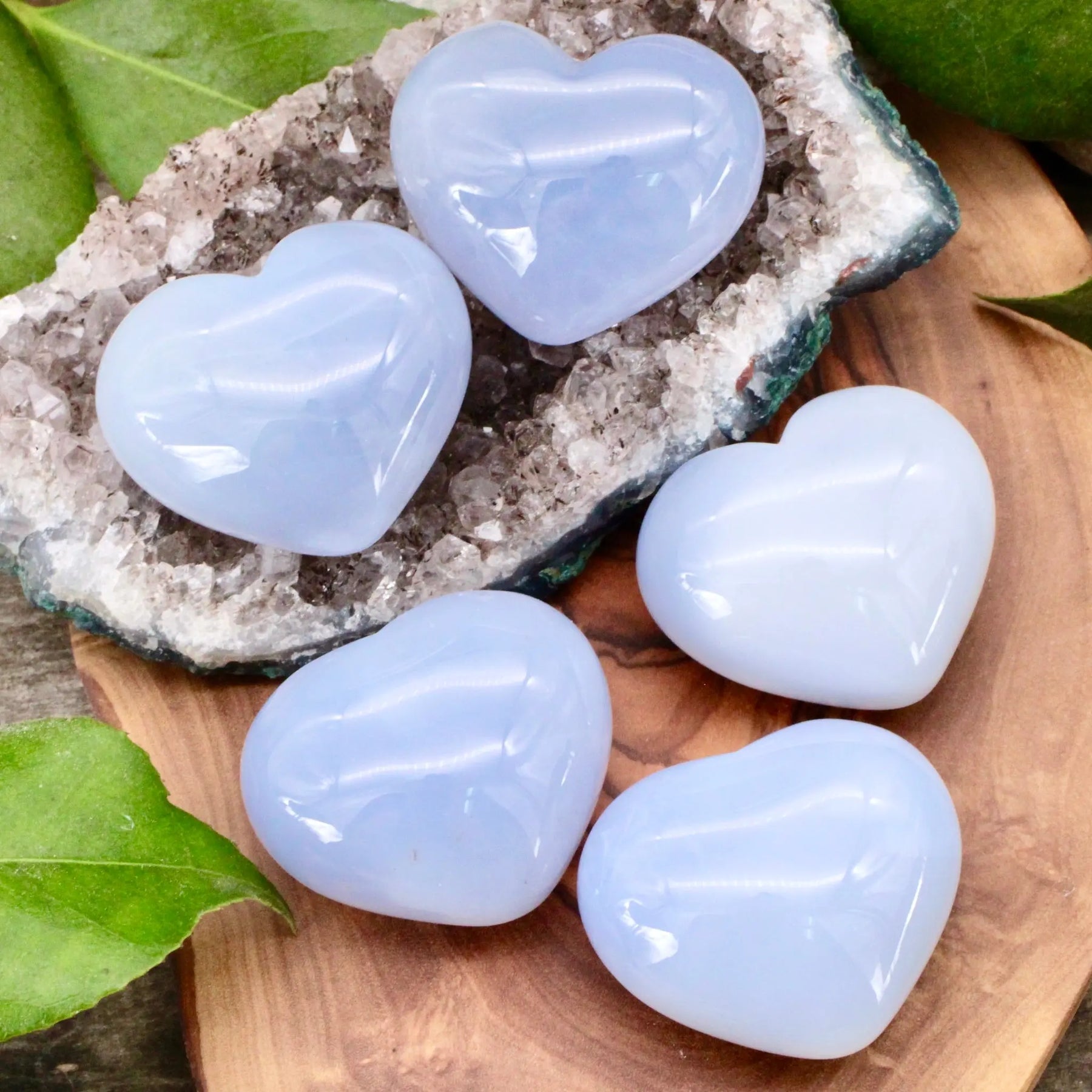 Talk about a cool find! This Blue Chalcedony heart is wonderful for enhancing your communication. Communication can be difficult for those with blocked throat chakras and Blue Chalcedony is perfect for restoring the balance.