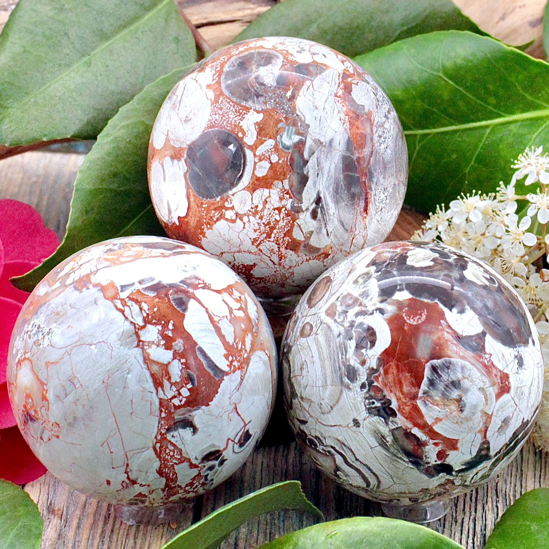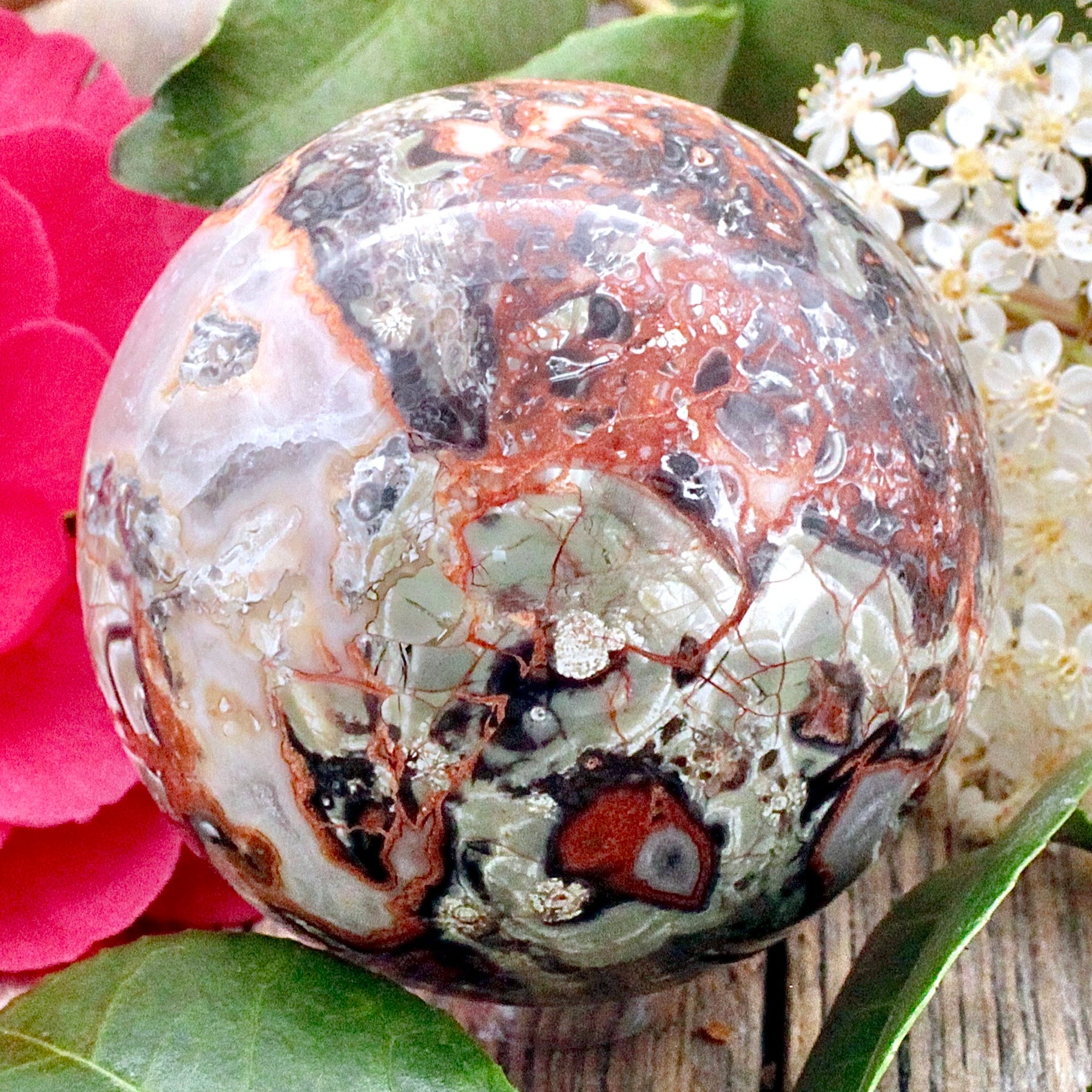 Invite new growth in your life with this Money Agate Sphere. Each sphere is very unique and is sure to add visual appeal to any space it is placed it. Let this energy of this stone radiate out to your home and life to assist in your future works.