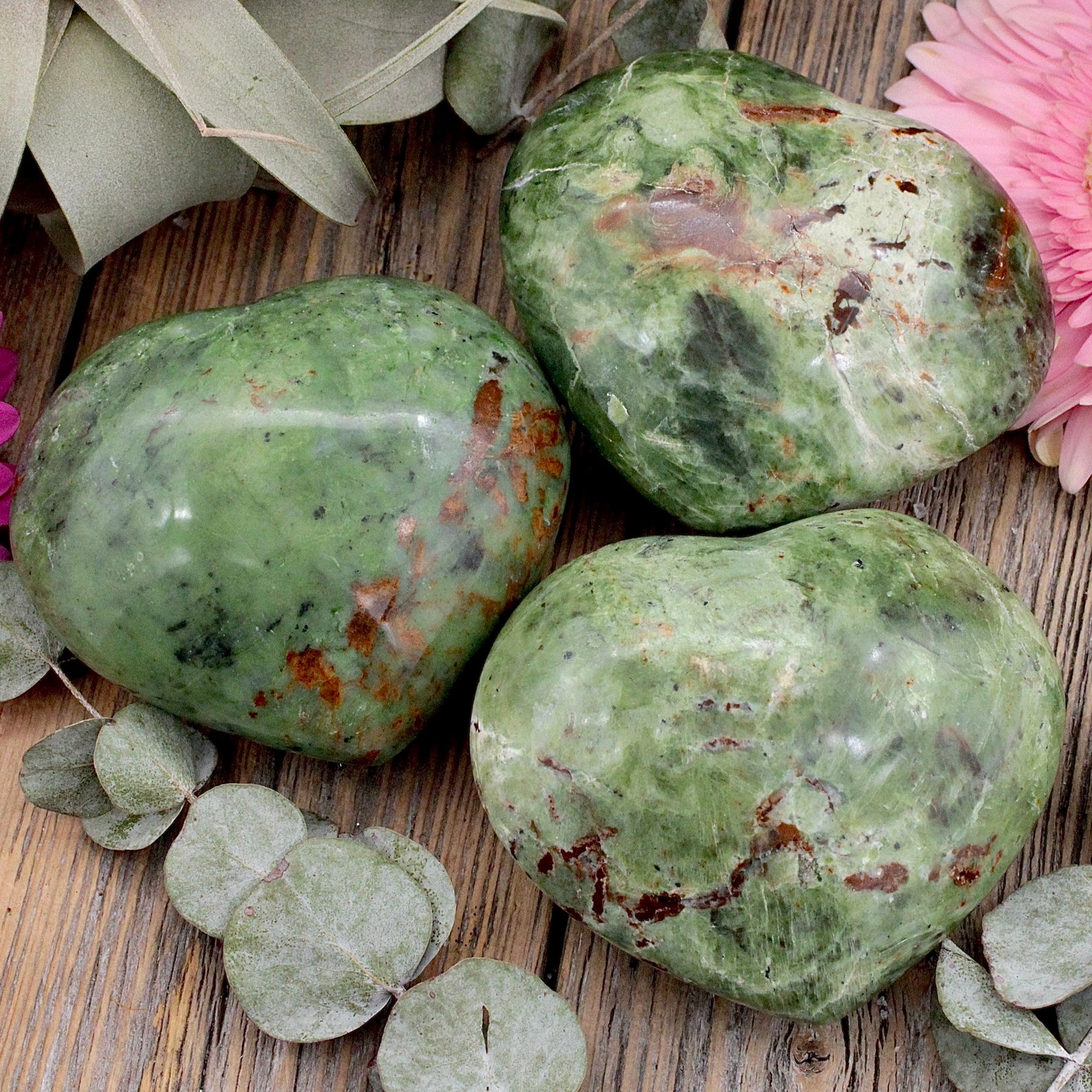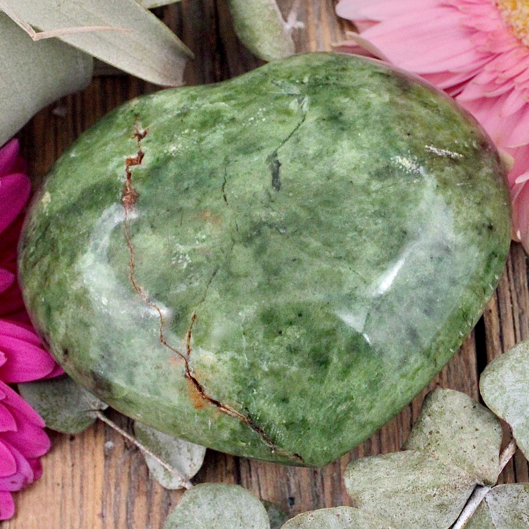 Bring in prosperity with this Chrysoprase Heart. Known for its detoxifying energy that cleanses body, mind and soul. Chrysoprase resonates at the level of both the heart and solar plexus chakras, it connects our personal will with our emotions.