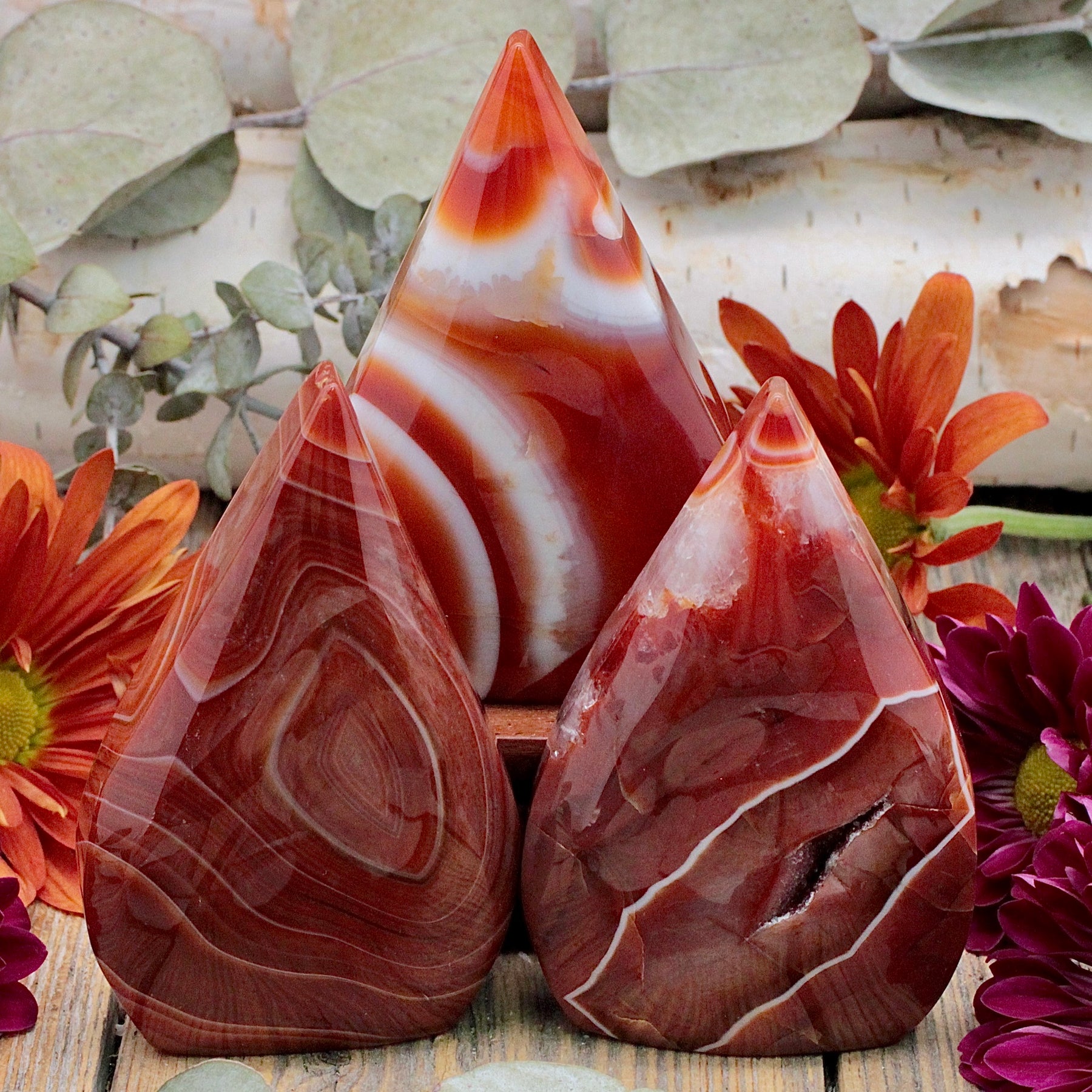 Carnelian is a grounding stone that is excellent for restoring vitality and motivation and for stimulating creativity. It has the ability to cleanse other stones. The stone emits positive energy and aids in the flow of new ideas. It is useful in overcoming abuse. Carnelian helps you trust yourself and overcome negative conditions.