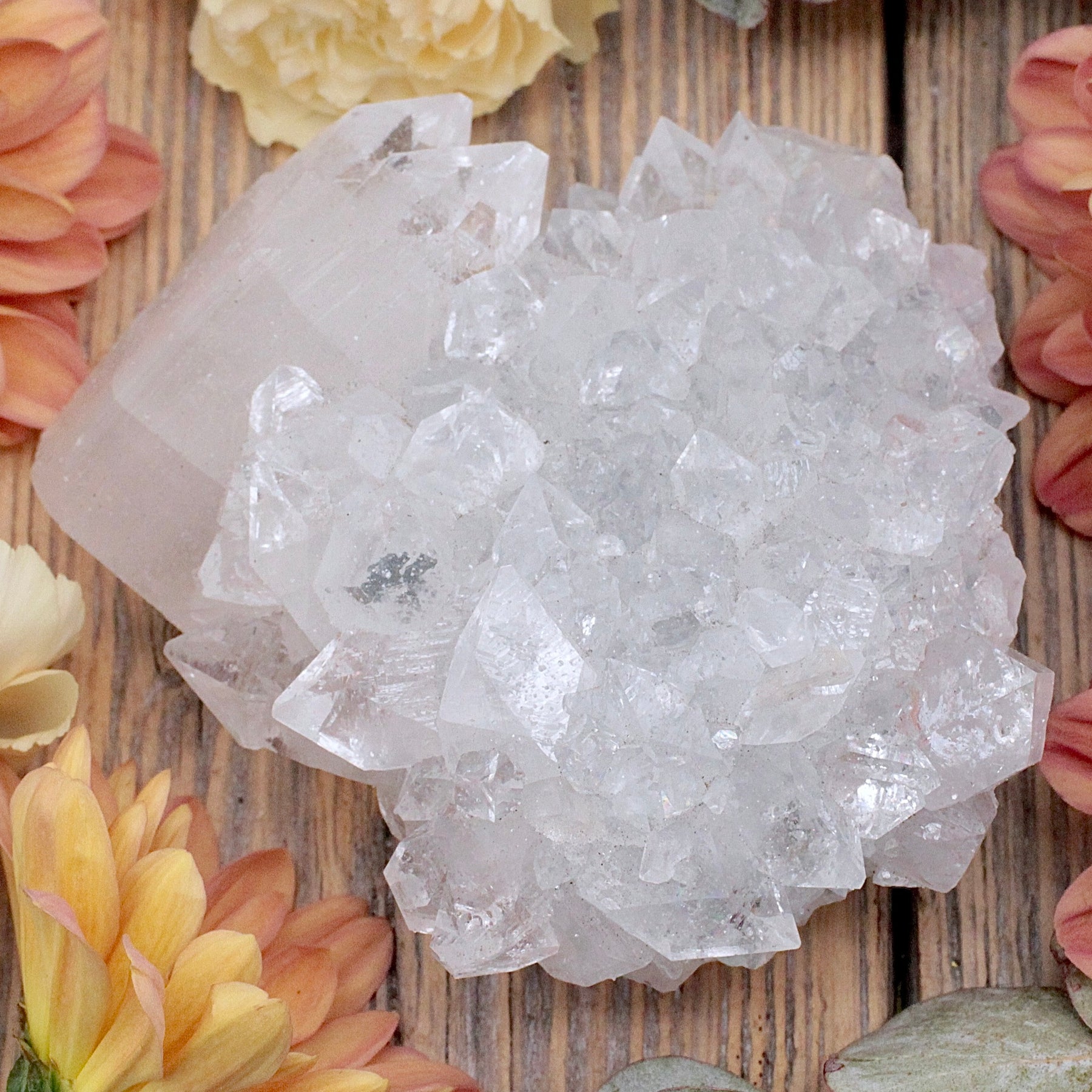 Make a deeper connection to your spirituality with an Apophyllite Cluster. This sparkly crystal helps to ease anxiety and increase psychic attunement.