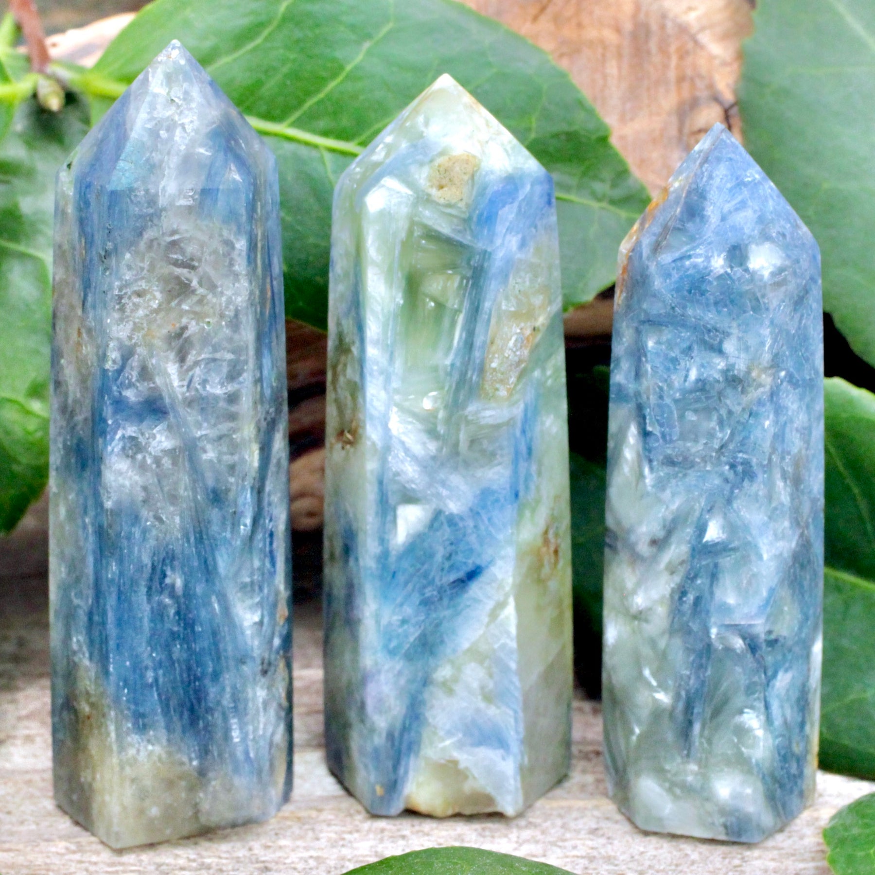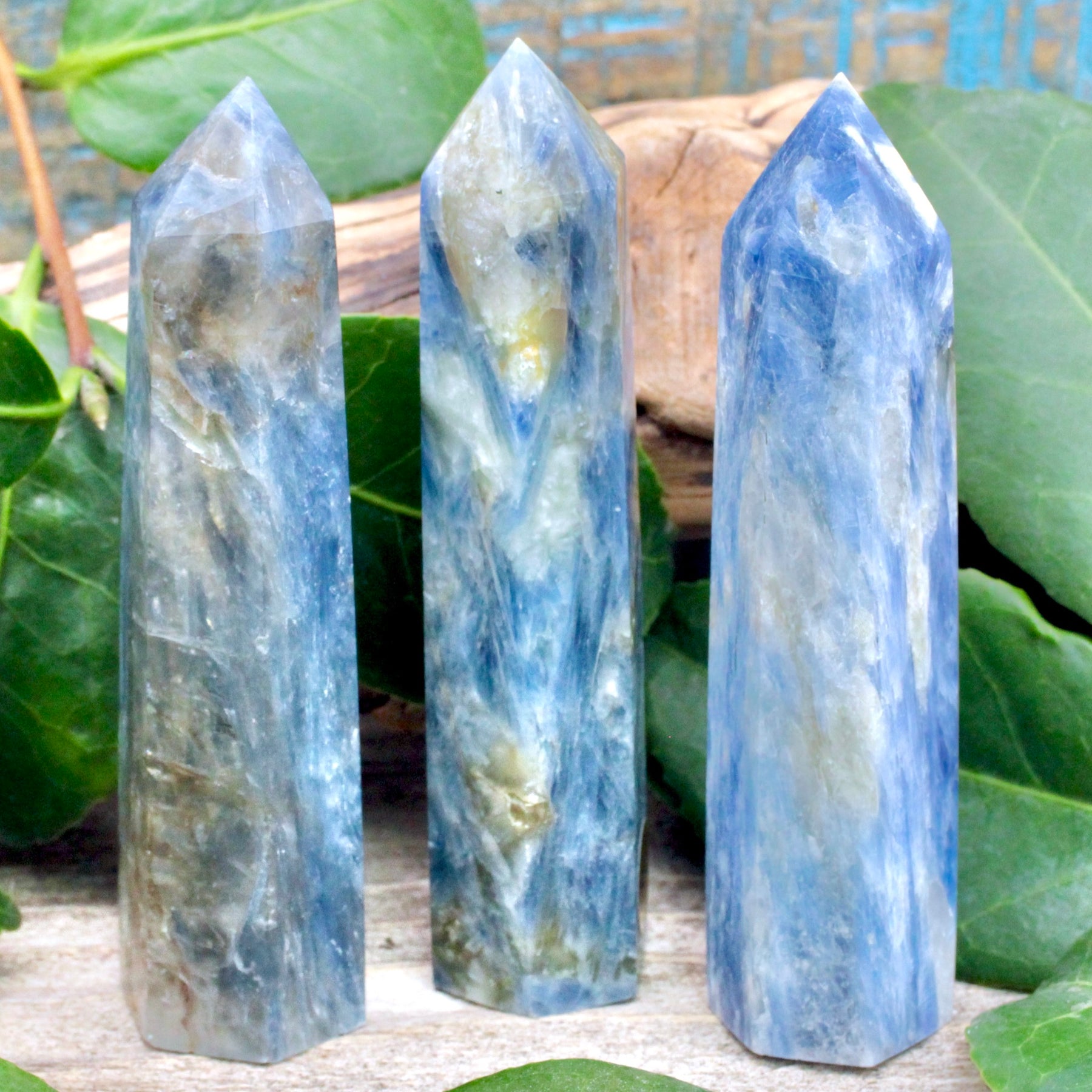 Awaken your intuitive powers with this Blue Kyanite Tower. Its focuses energy to aid spiritual exploration and truth-seeking. The enchanting blues mimic a clear sky infused with lively clouds, brimming with energy and promise.