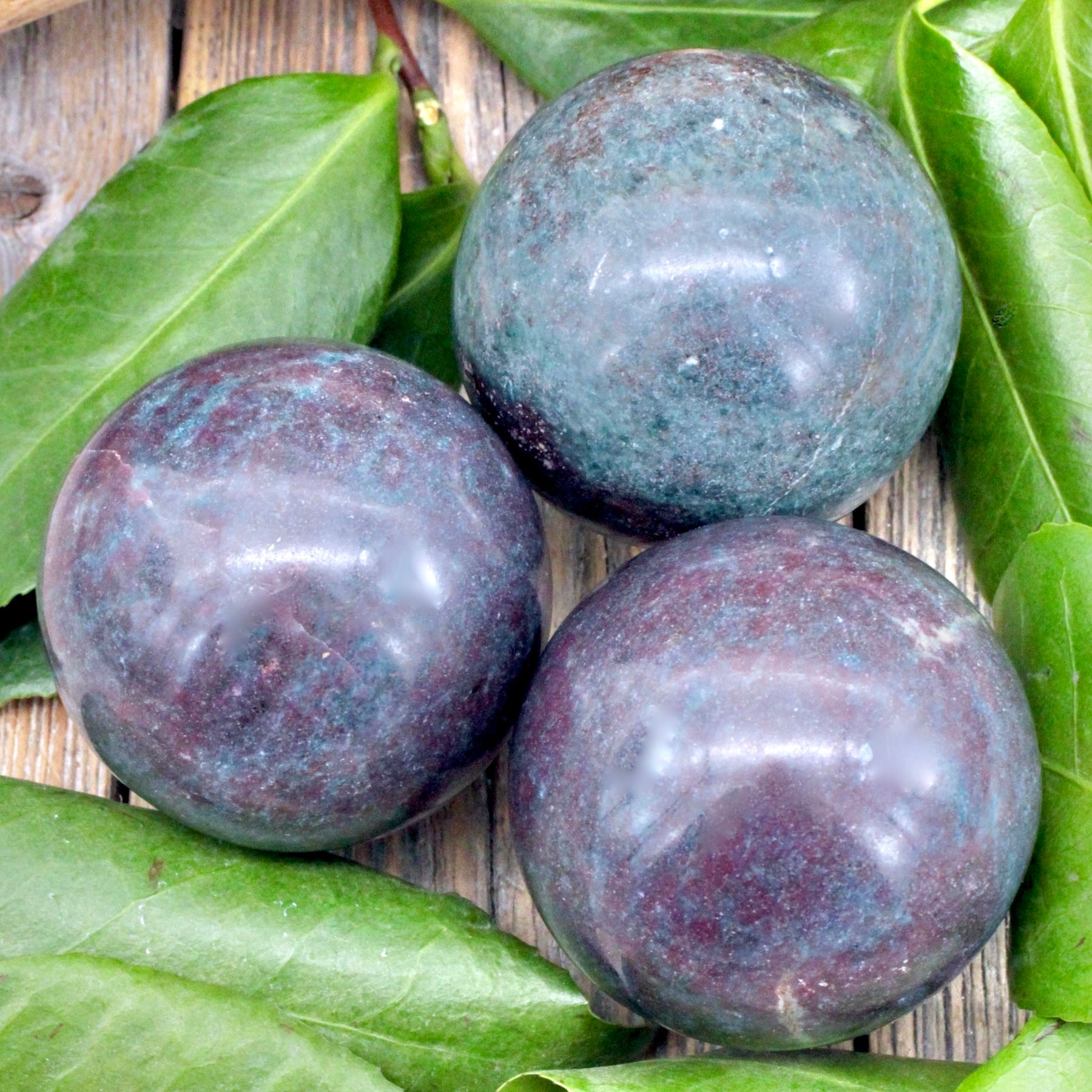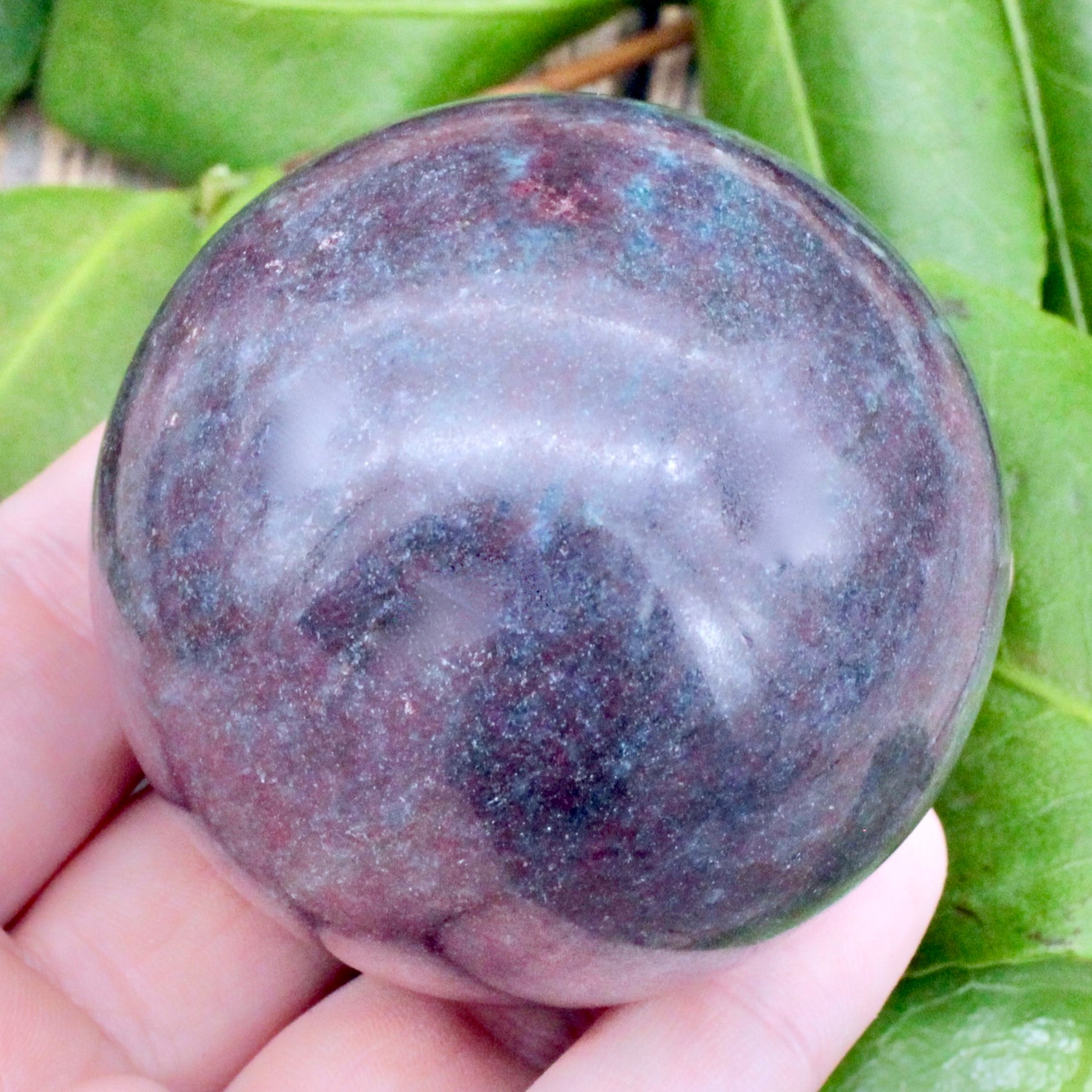 Manifest prosperity with this Ruby in Kyanite Sphere. Hold this stone in your hand when ever you find a need for motivation. This lovely stone is pretty to look on in regular light but be sure to find some UV light and see how it glows.