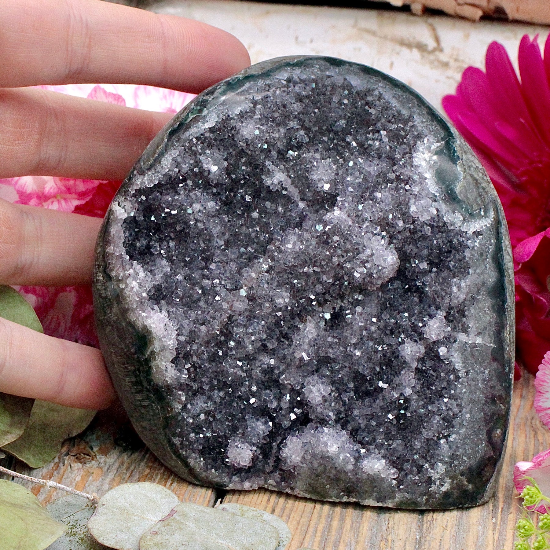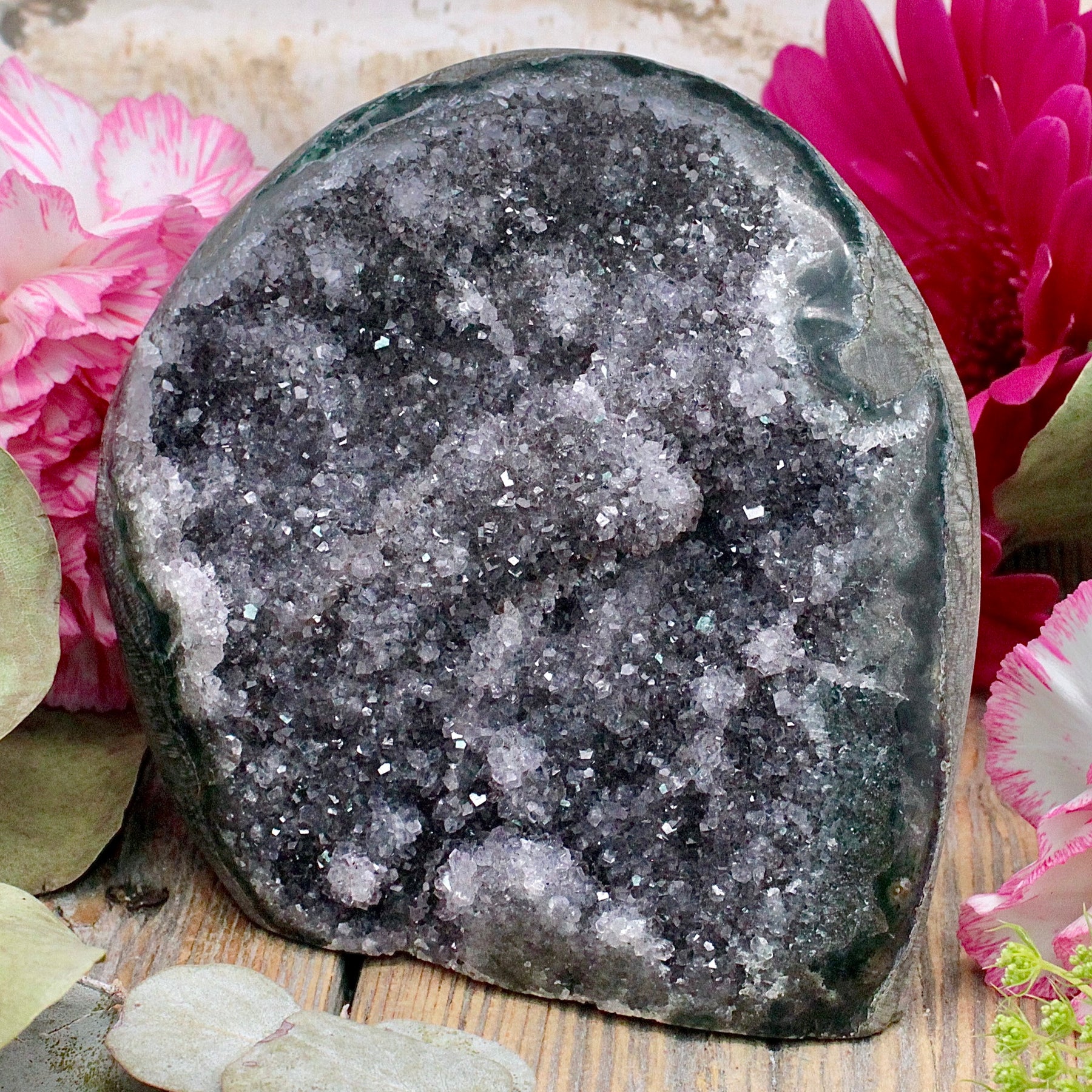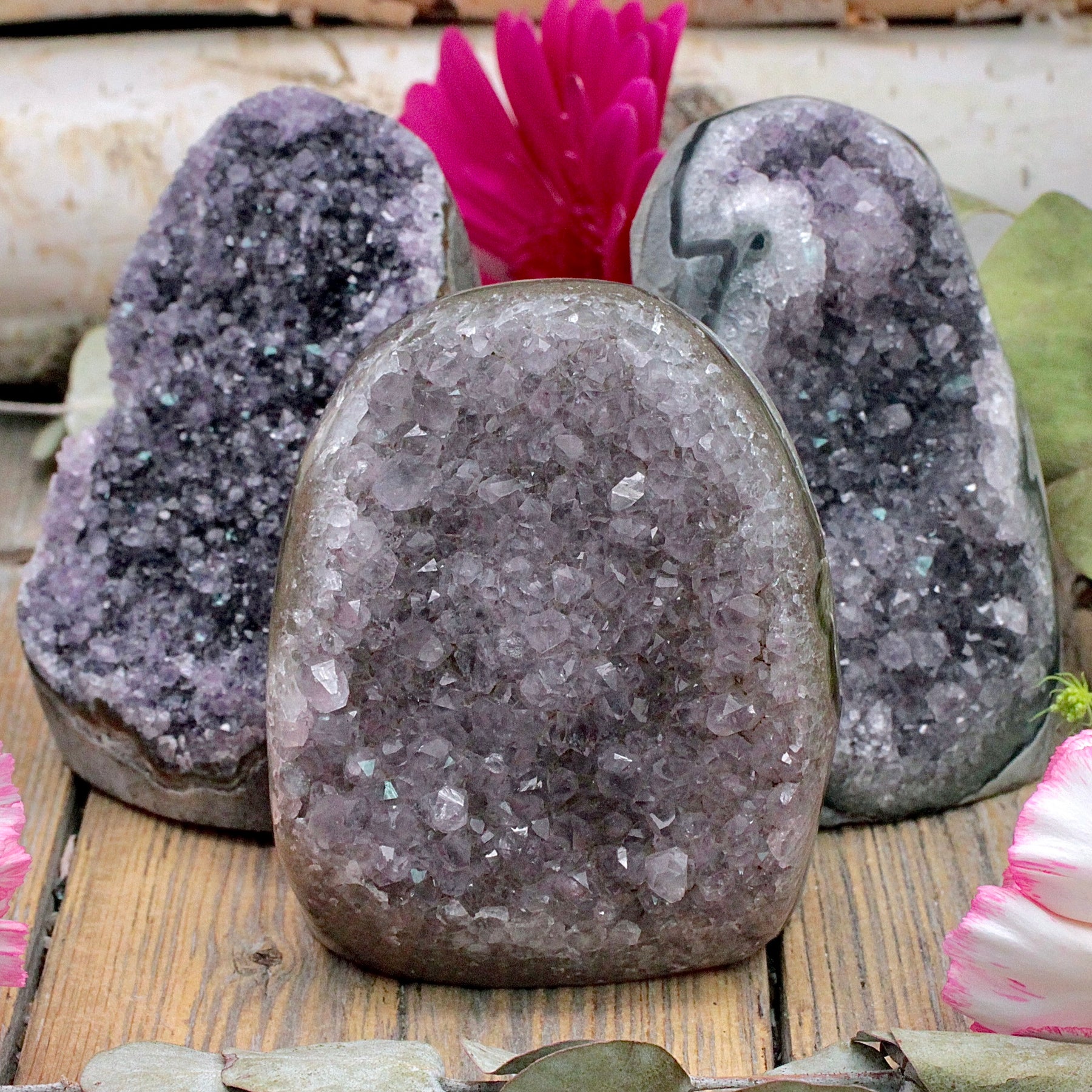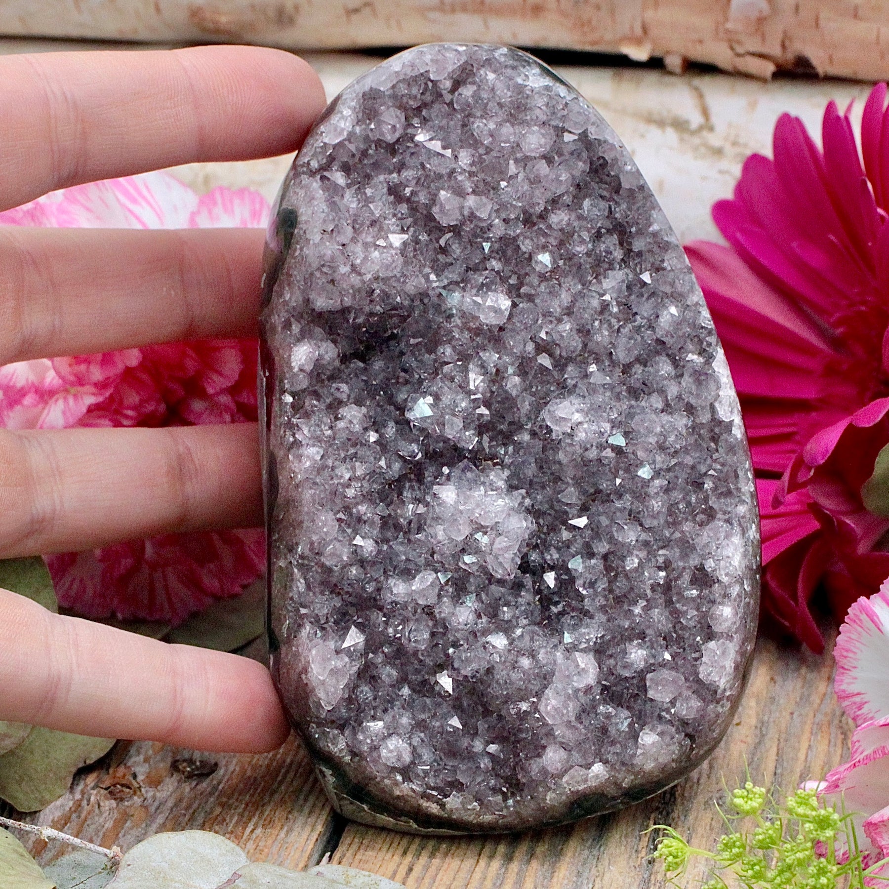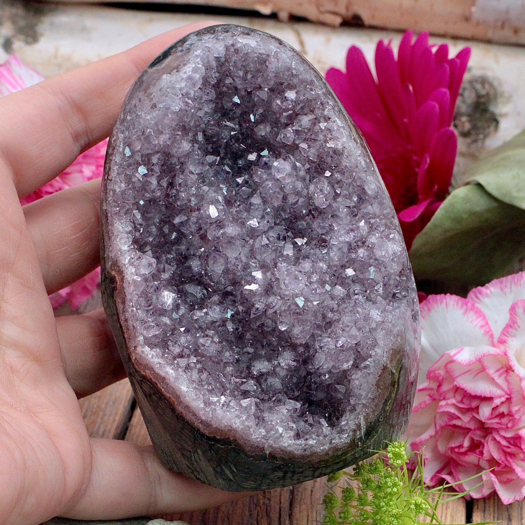 Amethyst is a protective stone that transforms negative energy into love, enhances intuition and aids connection to the Divine. It increases peace and serenity and heightens meditation and prayer. This stone promotes love, psychic gifts, and intuitive dreams. Amethyst assists in overcoming addictions and making wise decisions.