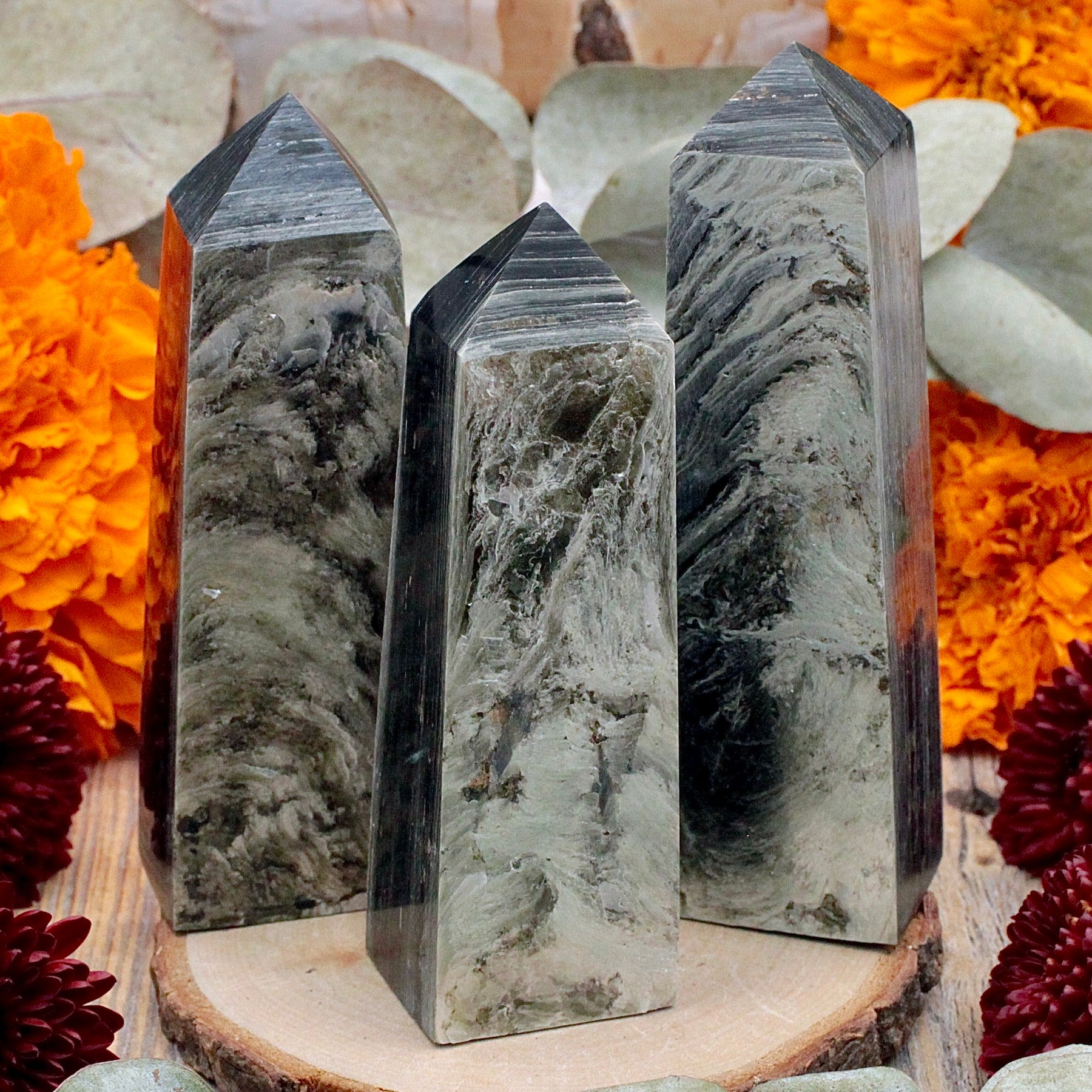 Biotite, also called Black Mica, is a stone of calming and grounding energy. It helps remove negative energy and offer mental and spiritual clarity. It allows us to better organize our lives and bring our bodies into alignment. It also offers connection to higher realms of consciousness.
